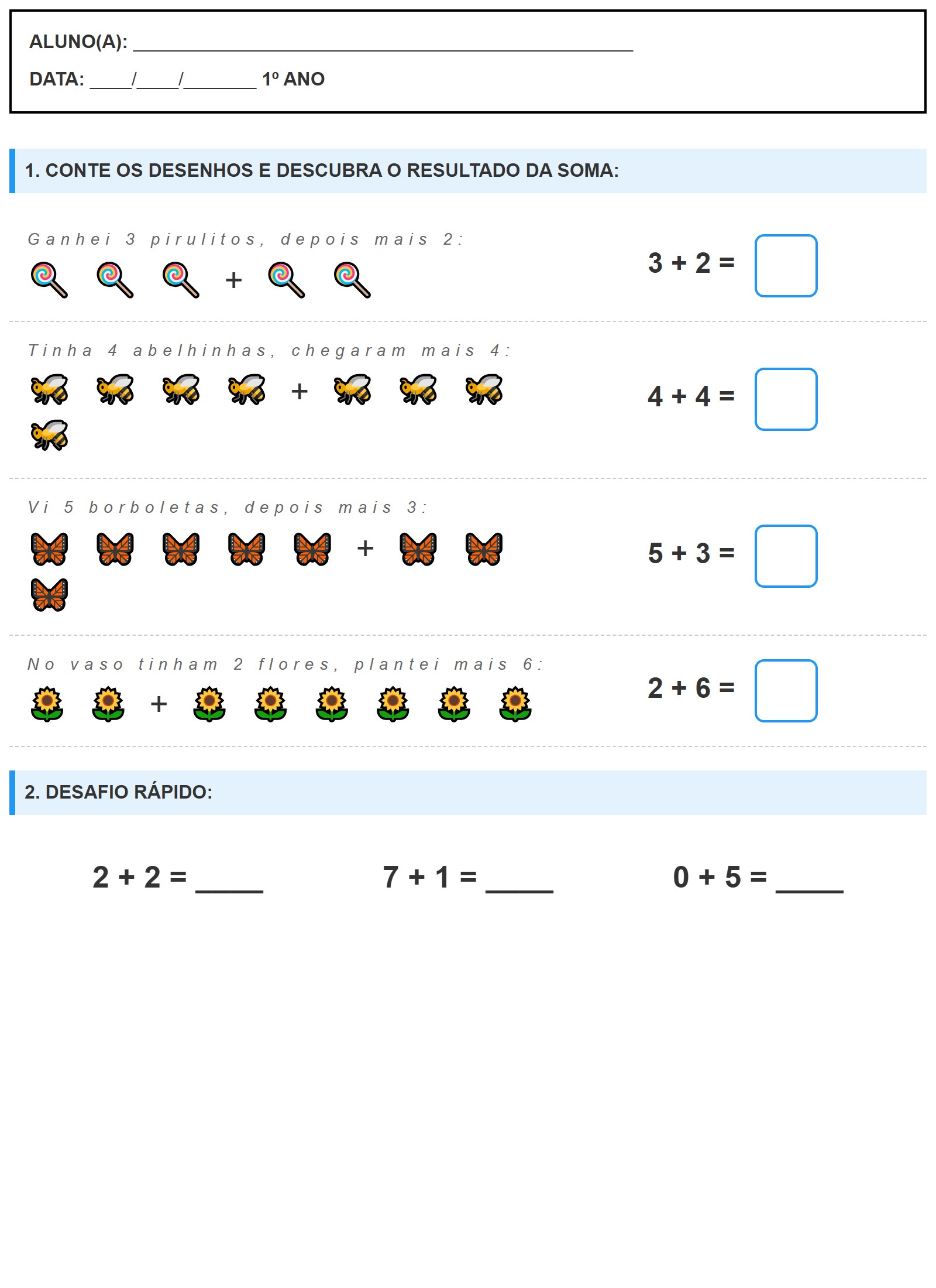 1. CONTE OS DESENHOS E DESCUBRA O RESULTADO DA SOMA: