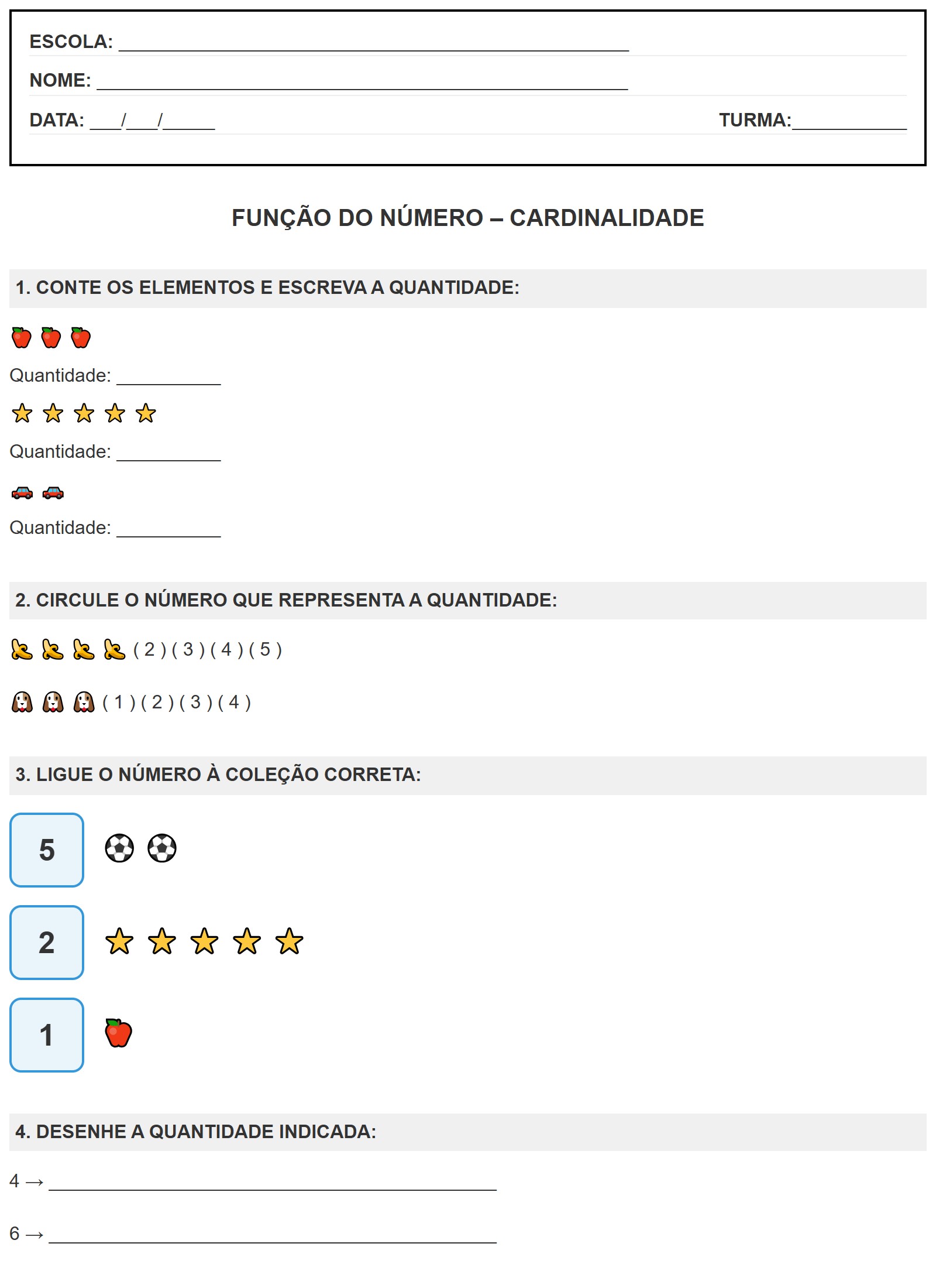 Atividade função do número cardinalidade 1 ano para imprimir