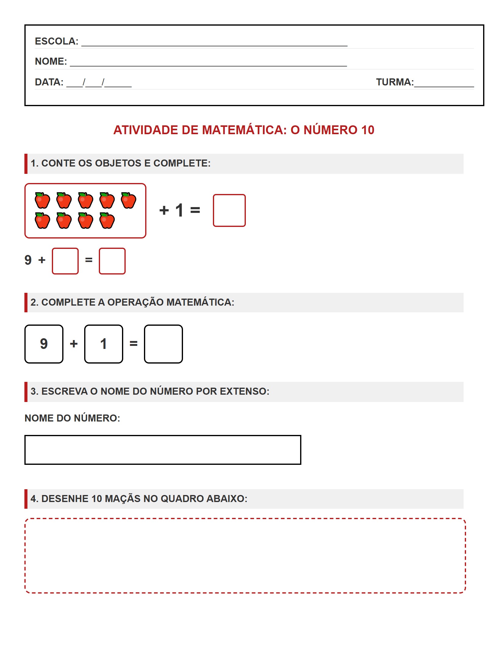 Atividade de Matemática: O Número 10
