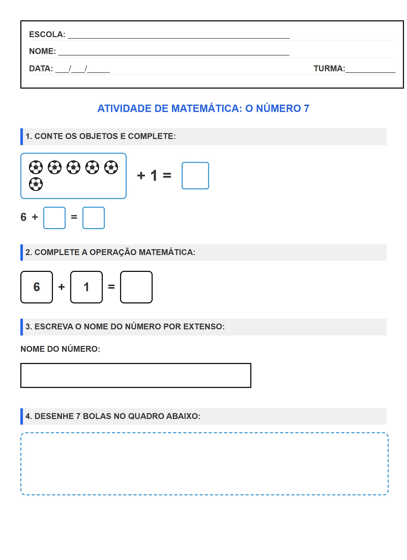 Atividade de Matemática 1º Ano: Complete as Quantidades e...