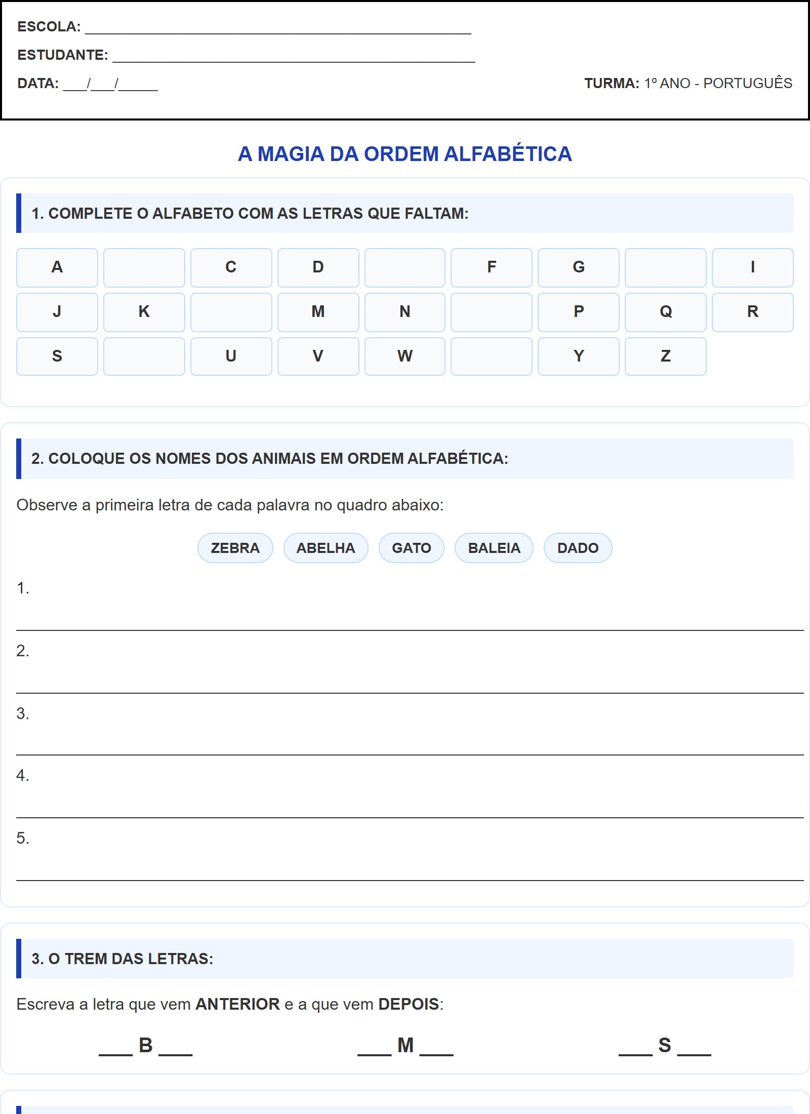 Escreva a letra que vem ANTERIOR e a que vem DEPOIS: