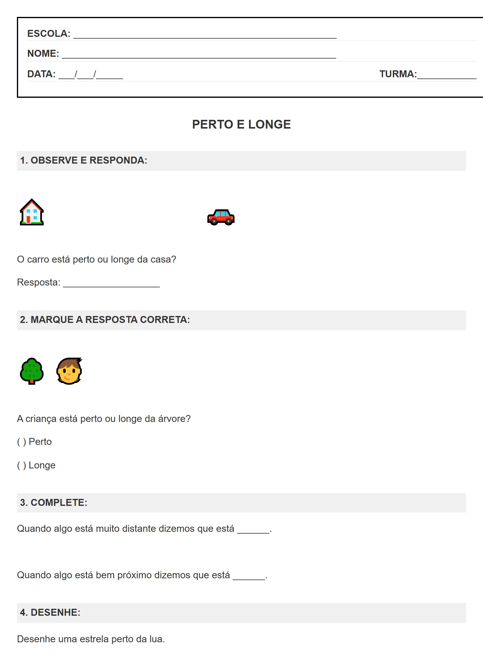 O carro está perto ou longe da casa?