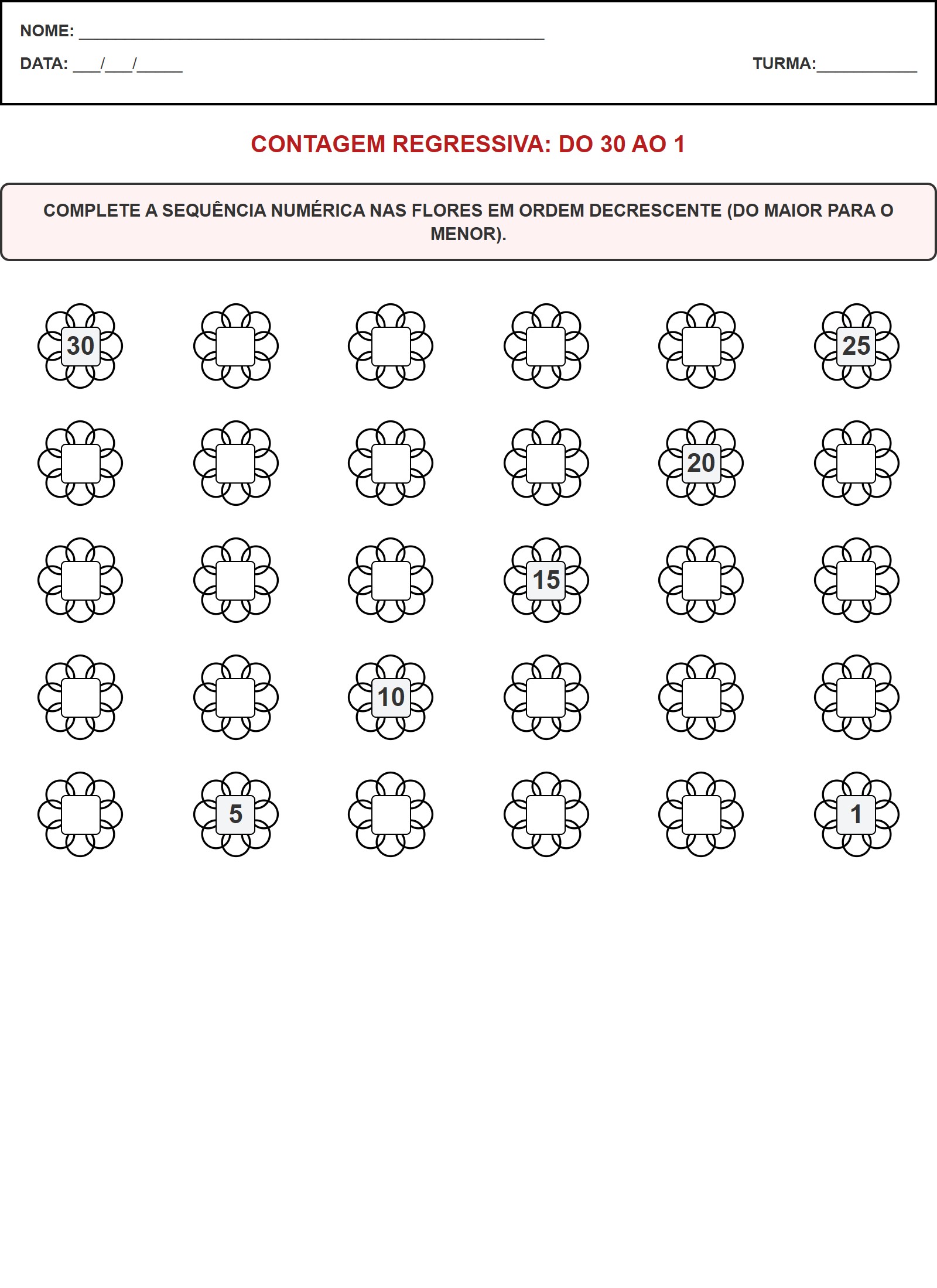 Atividade Sequência Numérica Ordem Decrescente 30 ao 1 ano