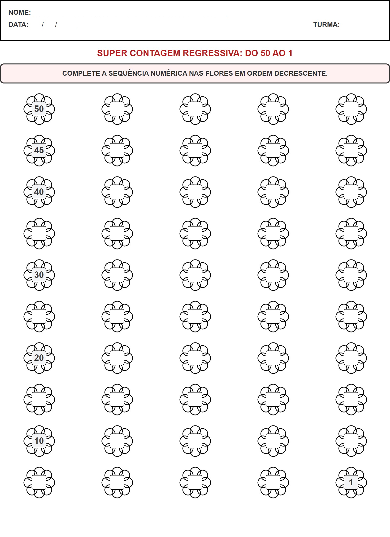 Atividade Sequência Numérica Ordem Decrescente 50 ao 1 ano