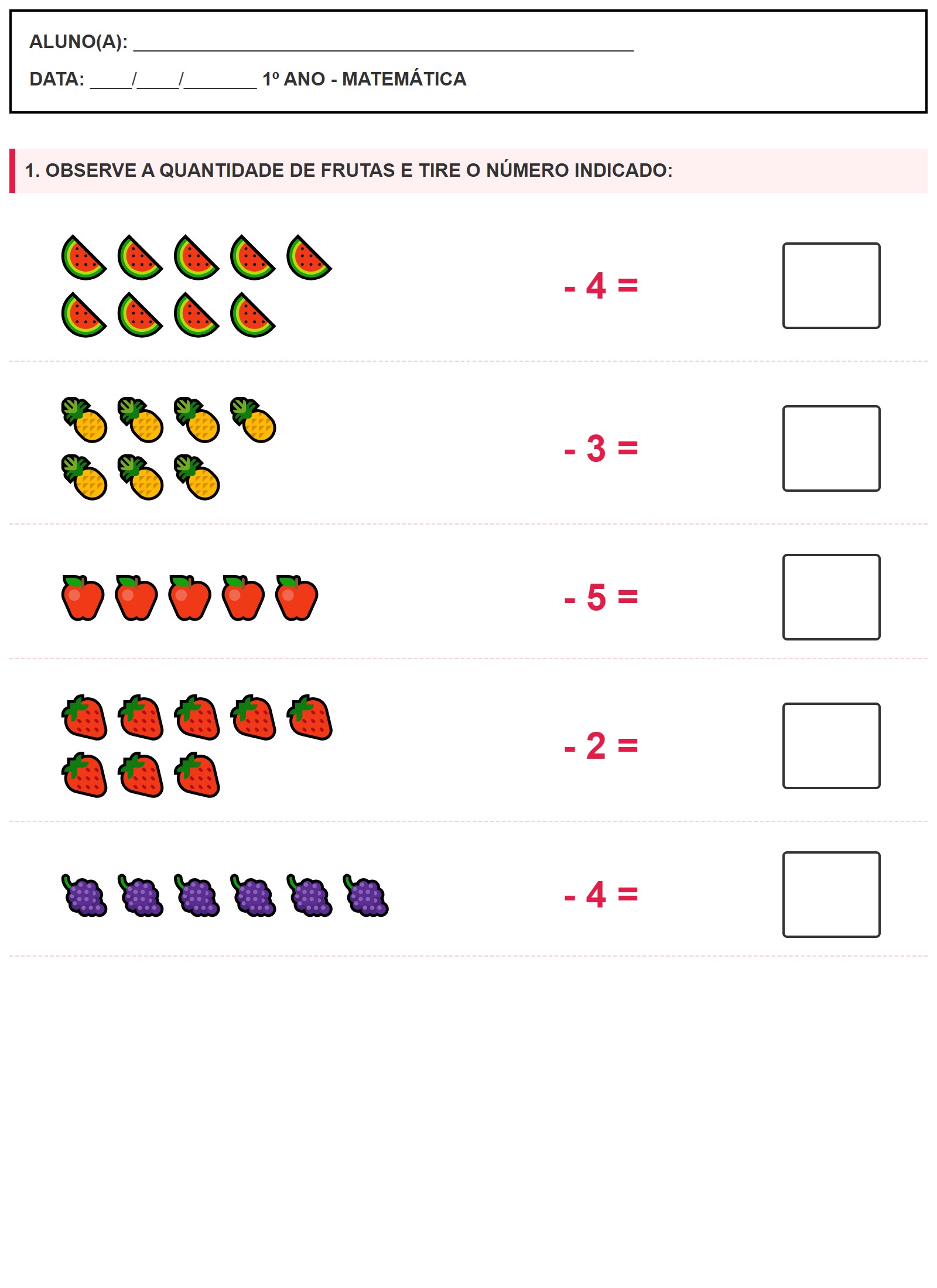 Atividade de Exercicio Adicao Subtracao 1º Ano