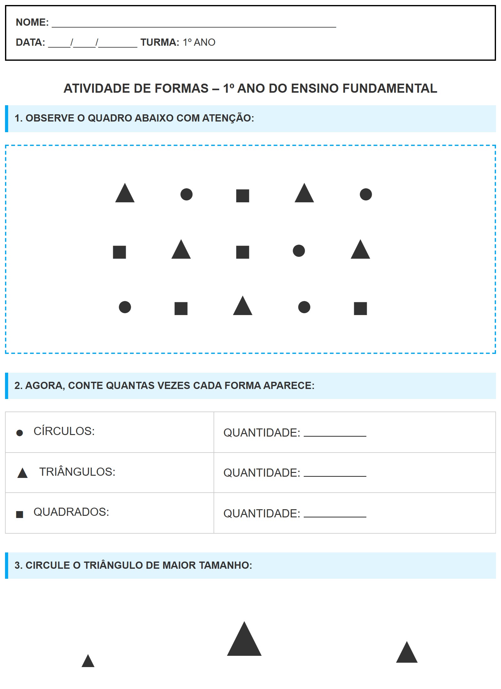 Atividade de Formas – 1º Ano do Ensino Fundamental