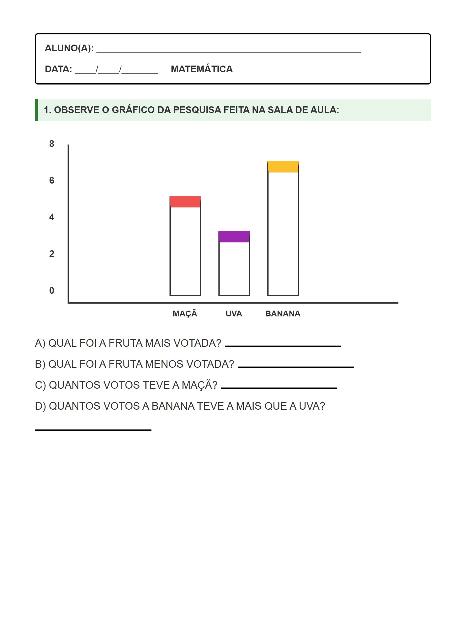 1. OBSERVE O GRÁFICO DA PESQUISA FEITA NA SALA DE AULA:
