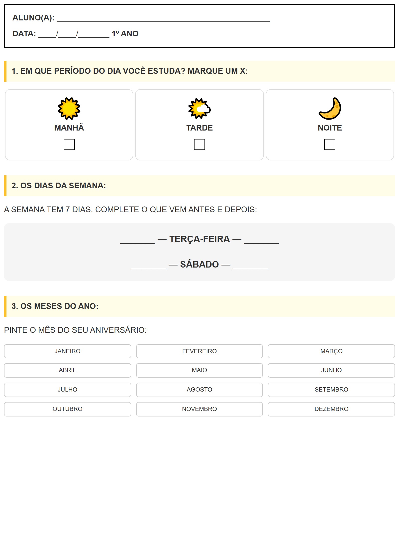 1. EM QUE PERÍODO DO DIA VOCÊ ESTUDA? MARQUE UM X: