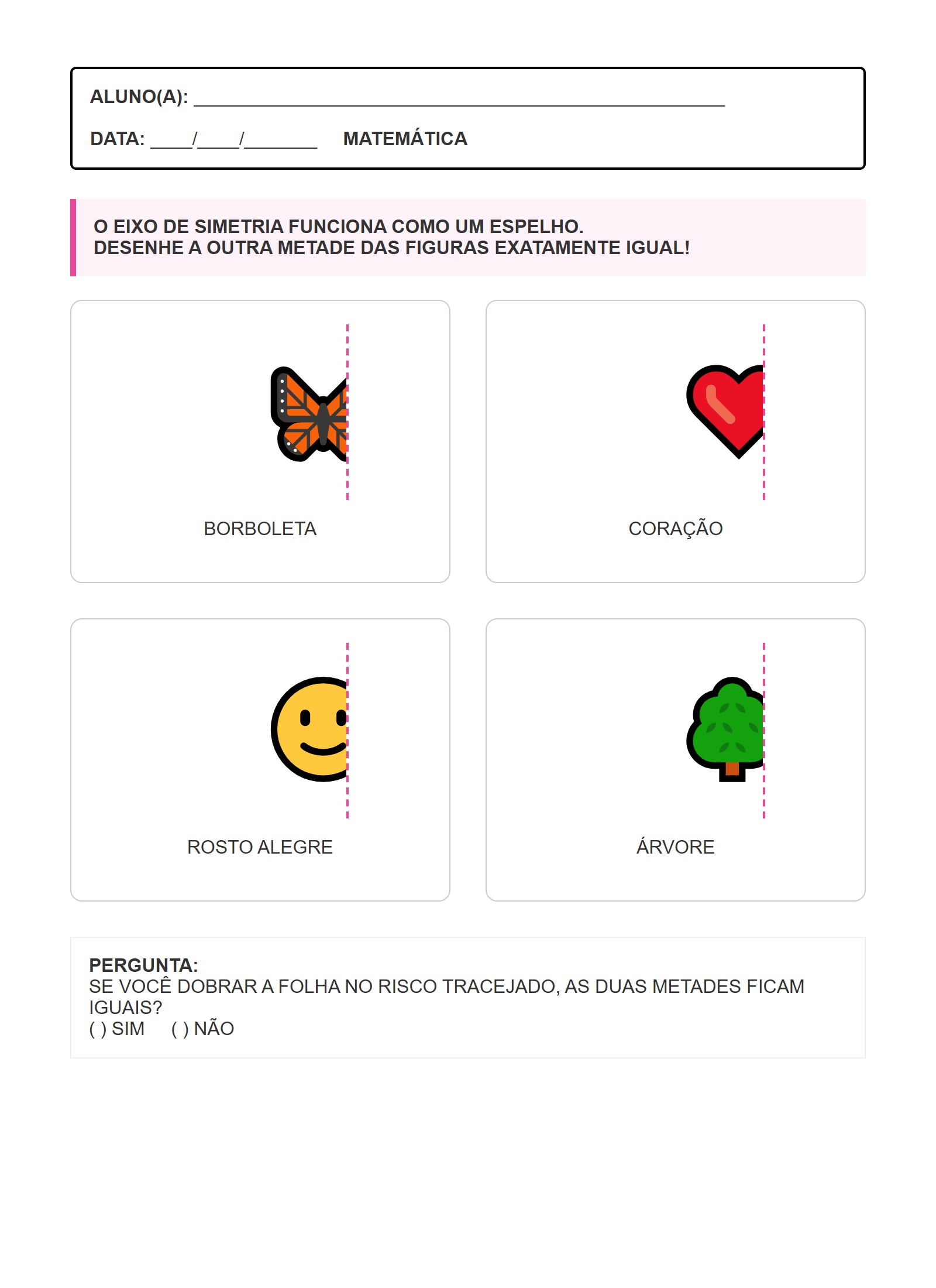 SE VOCÊ DOBRAR A FOLHA NO RISCO TRACEJADO, AS DUAS METADES FICAM IGUAIS?