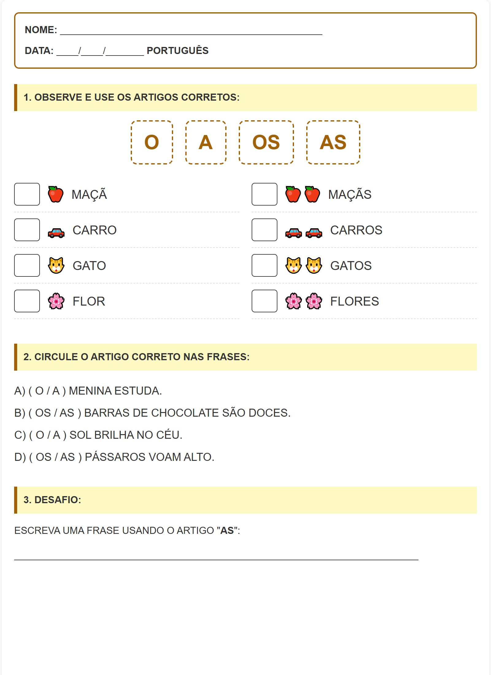 2. CIRCULE O ARTIGO CORRETO NAS FRASES: