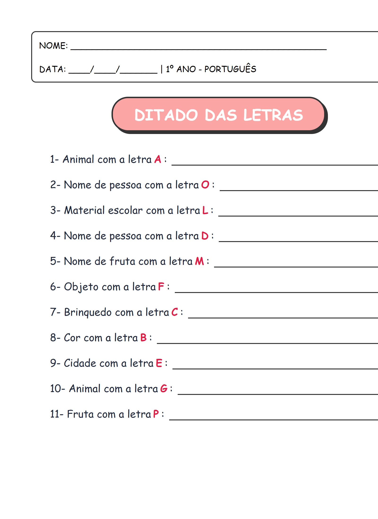 DATA: ____/____/_______ | 1º ANO - PORTUGUÊS