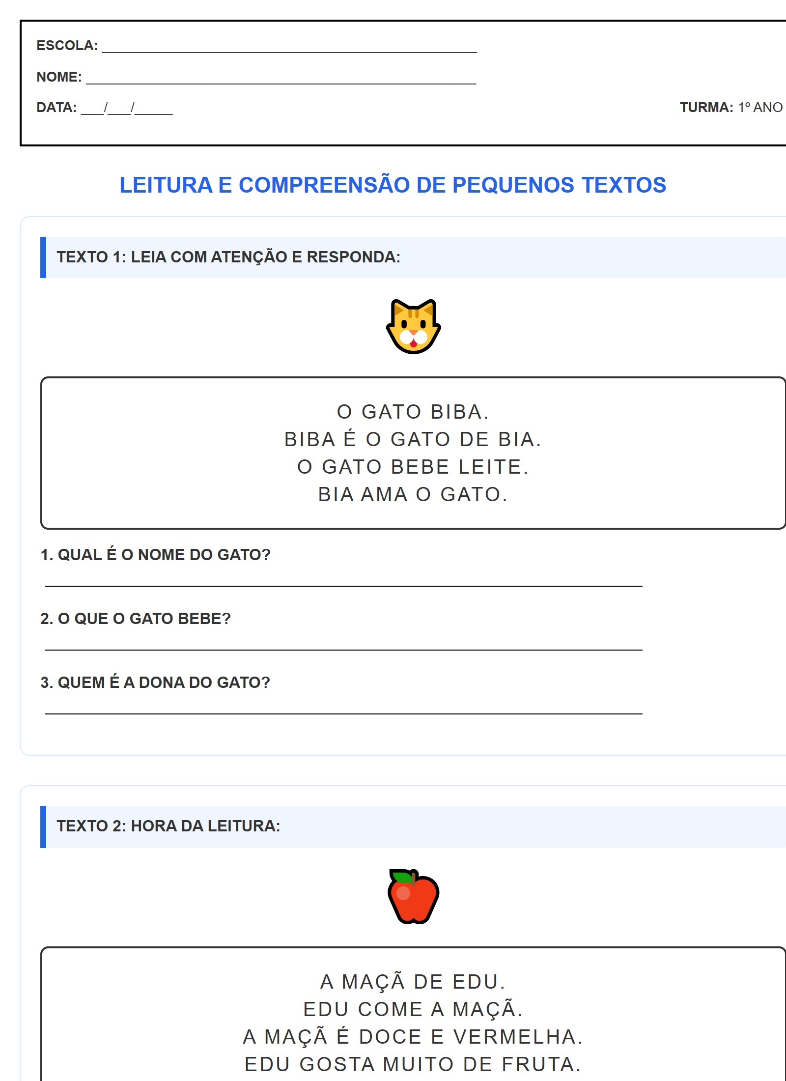 TEXTO 1: LEIA COM ATENÇÃO E RESPONDA: