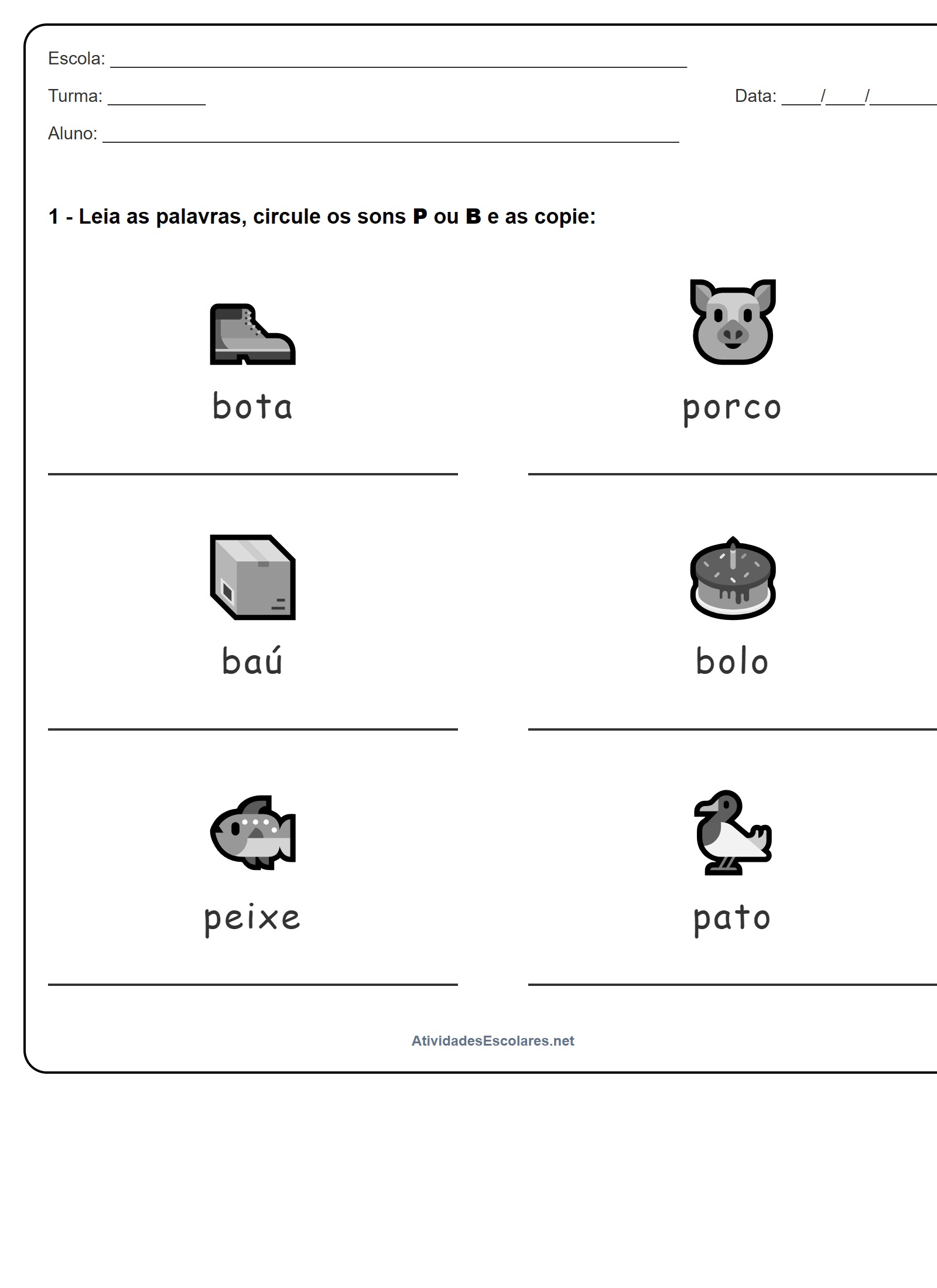 1 - Leia as palavras, circule os sons