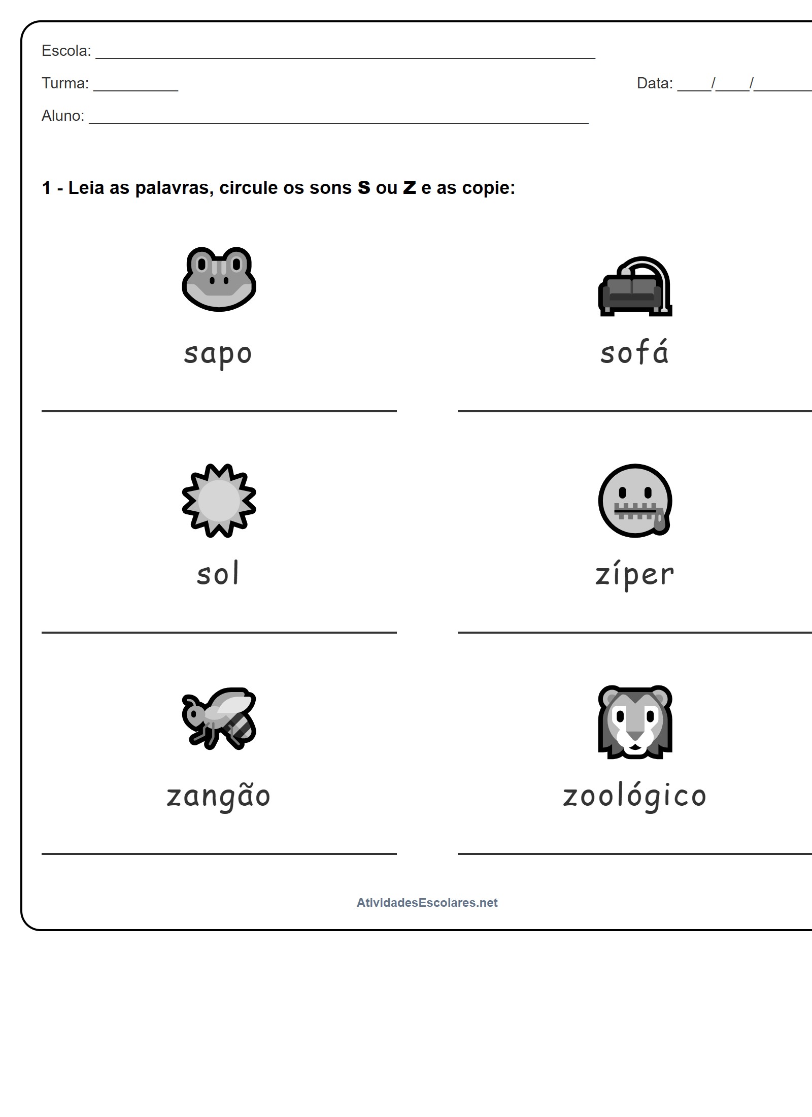 1 - Leia as palavras, circule os sons