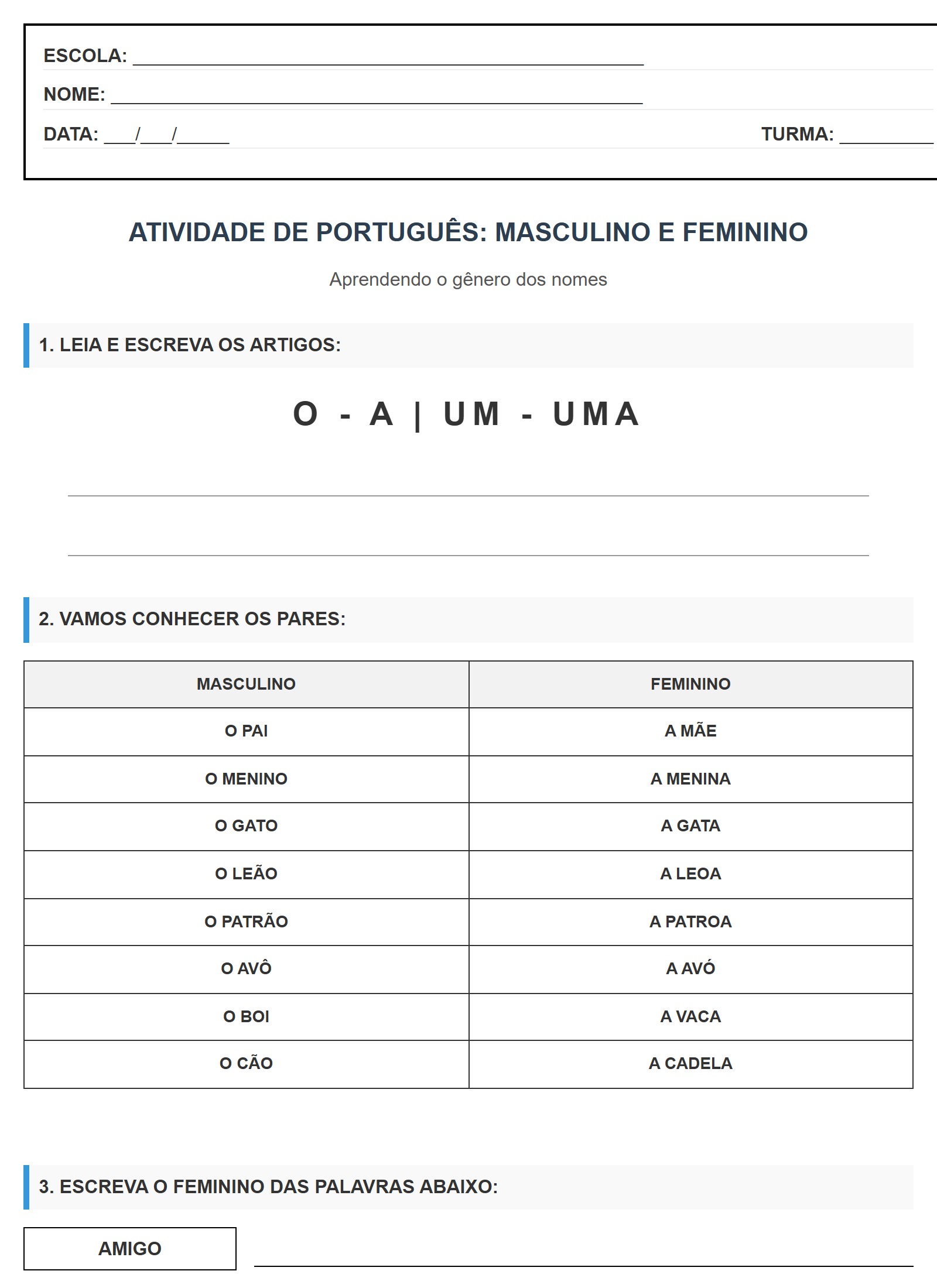 3. ESCREVA O FEMININO DAS PALAVRAS ABAIXO: