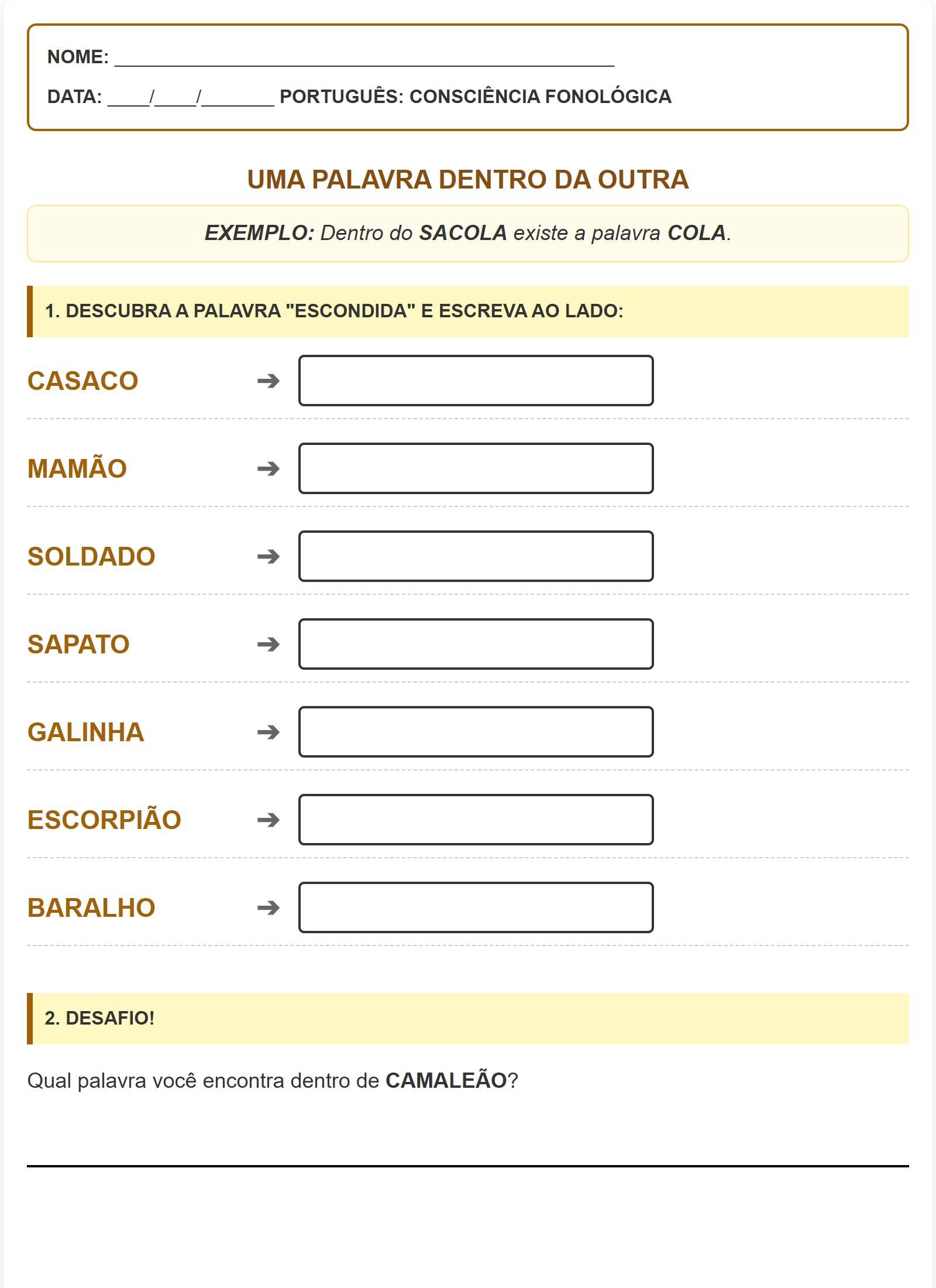 PORTUGUÊS: CONSCIÊNCIA FONOLÓGICA