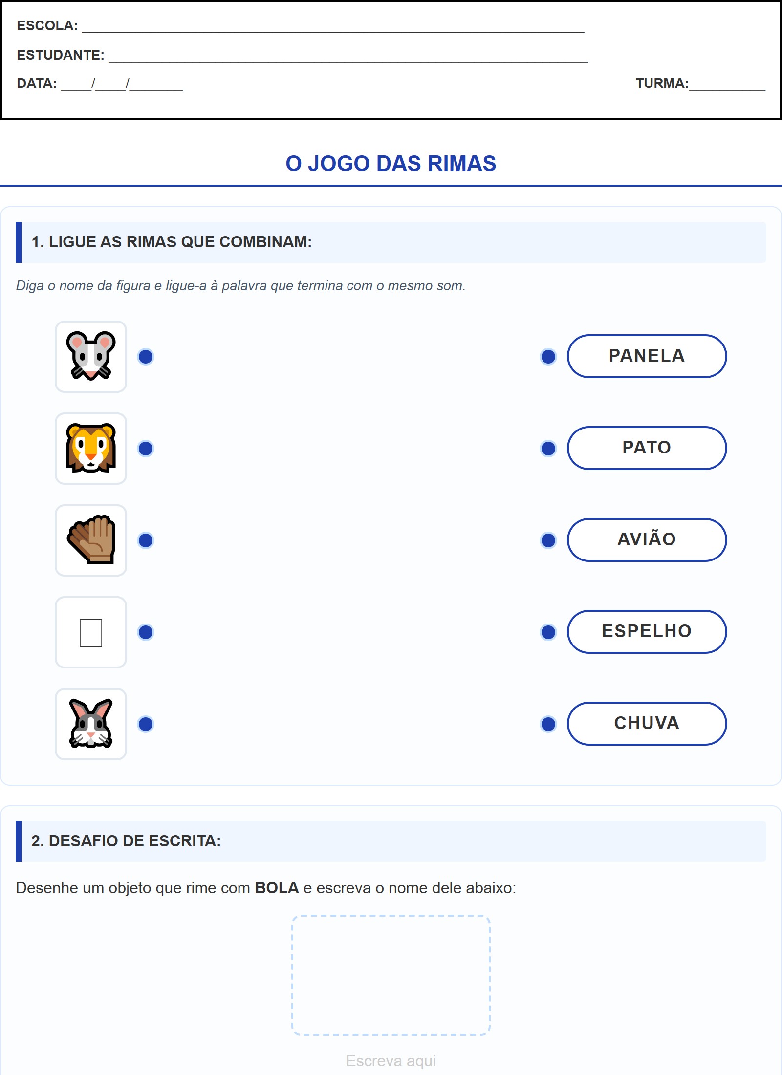 Diga o nome da figura e ligue-a à palavra que termina com o mesmo som.