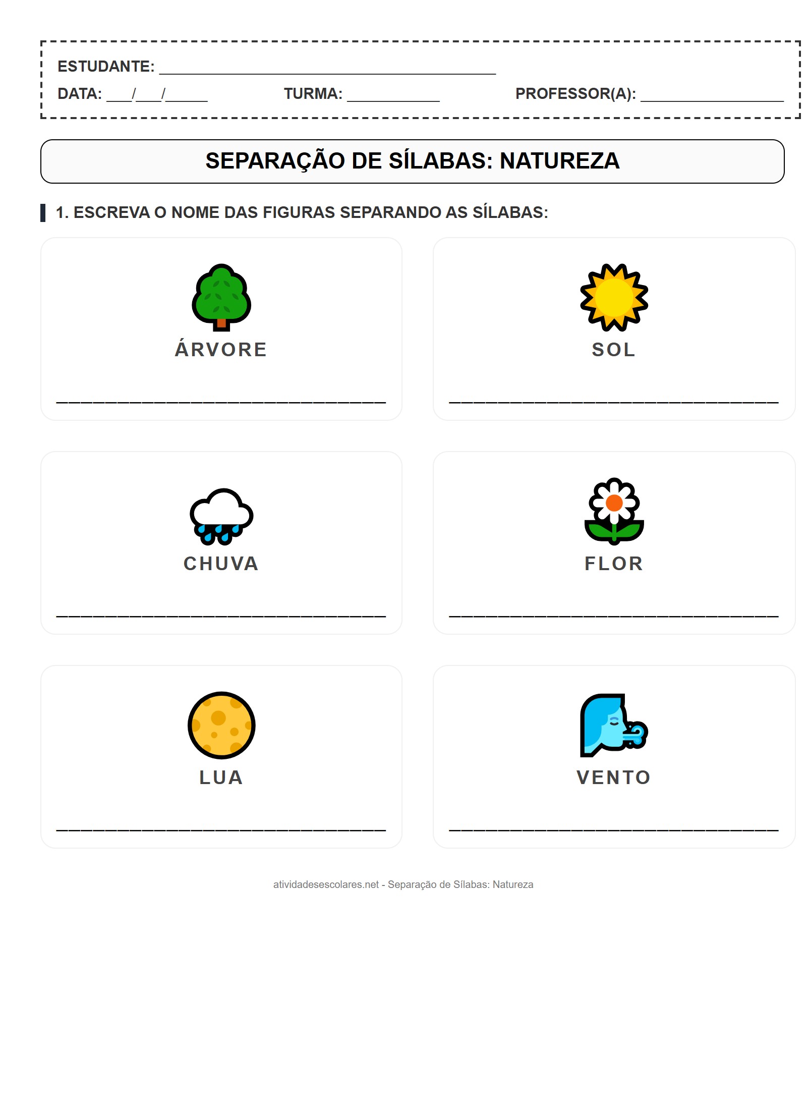1. ESCREVA O NOME DAS FIGURAS SEPARANDO AS SÍLABAS: