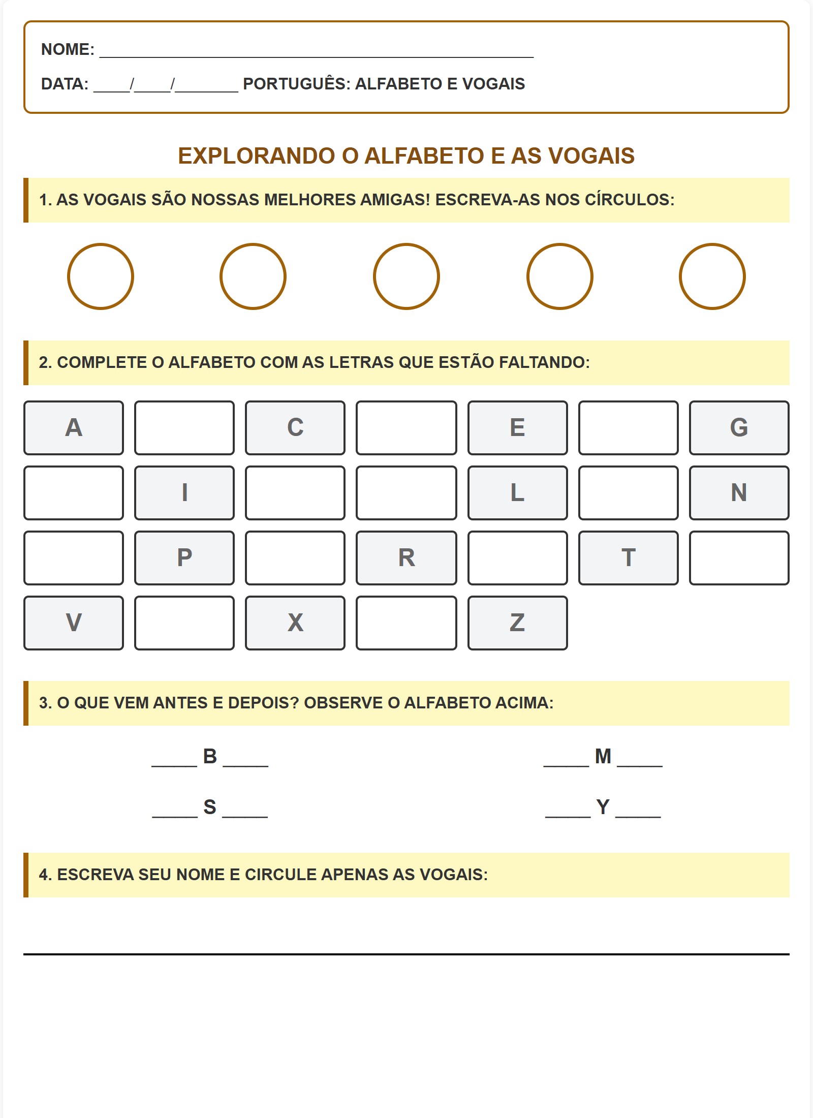 4. ESCREVA SEU NOME E CIRCULE APENAS AS VOGAIS: