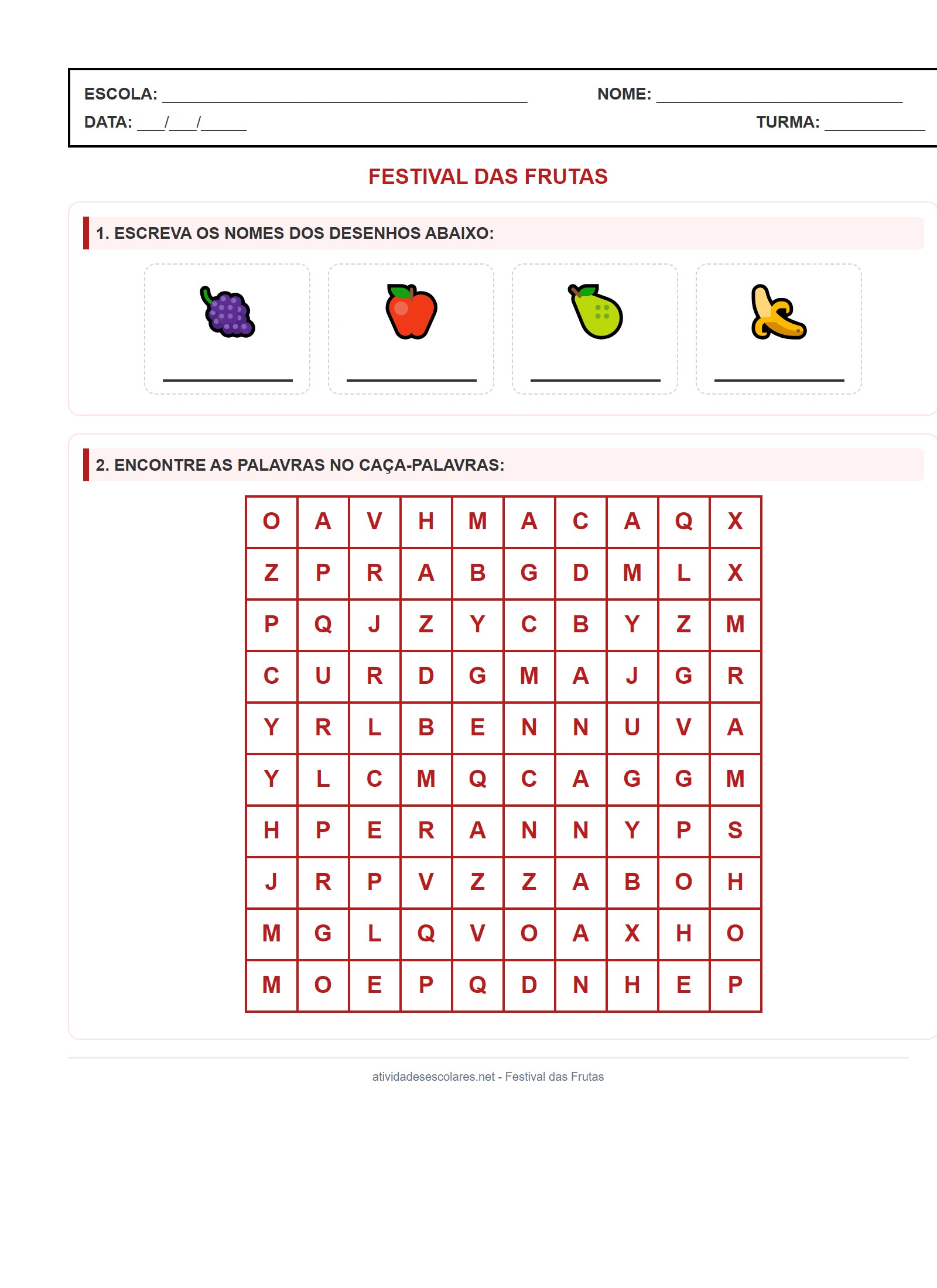 1. ESCREVA OS NOMES DOS DESENHOS ABAIXO: