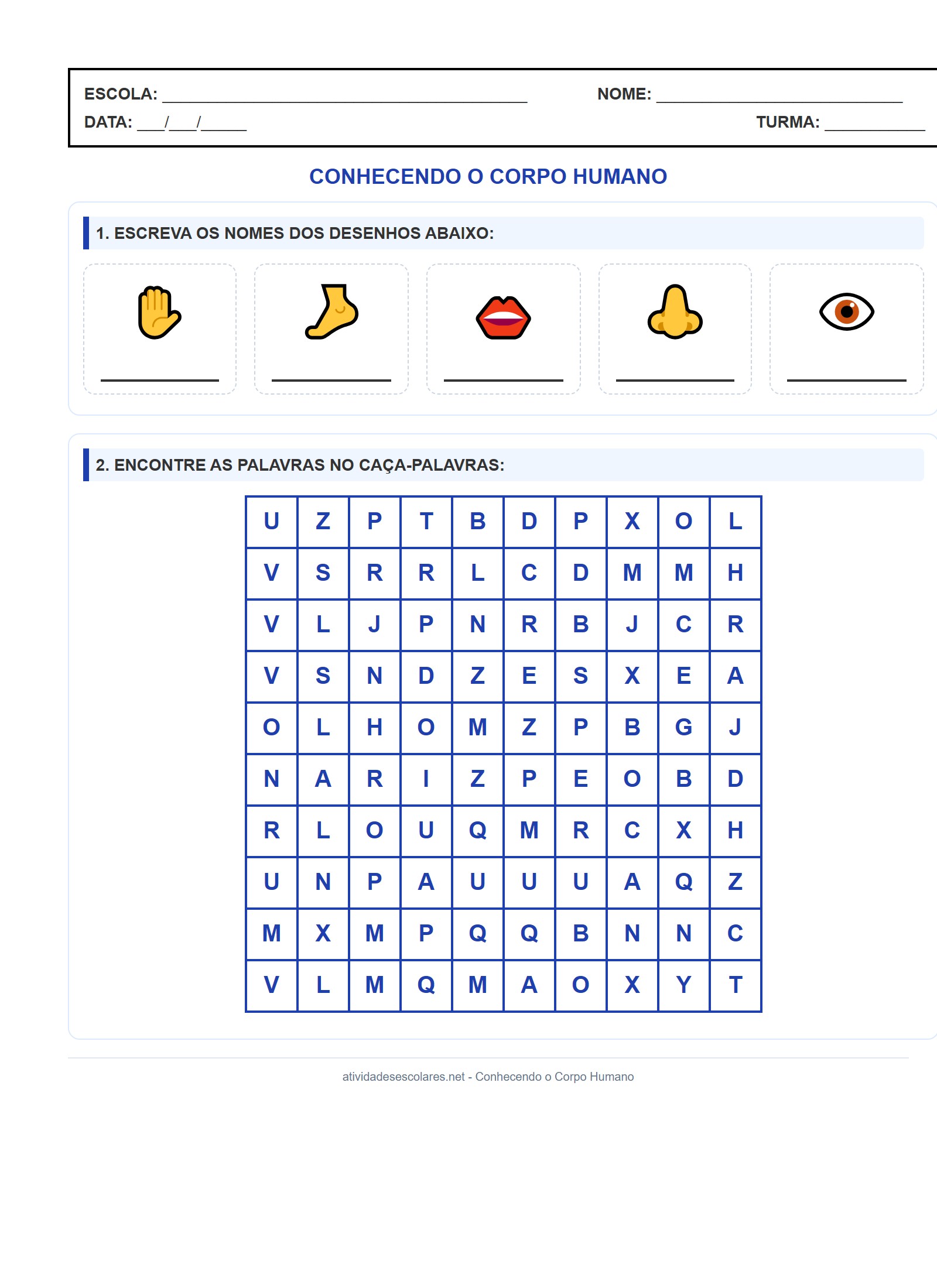 1. ESCREVA OS NOMES DOS DESENHOS ABAIXO: