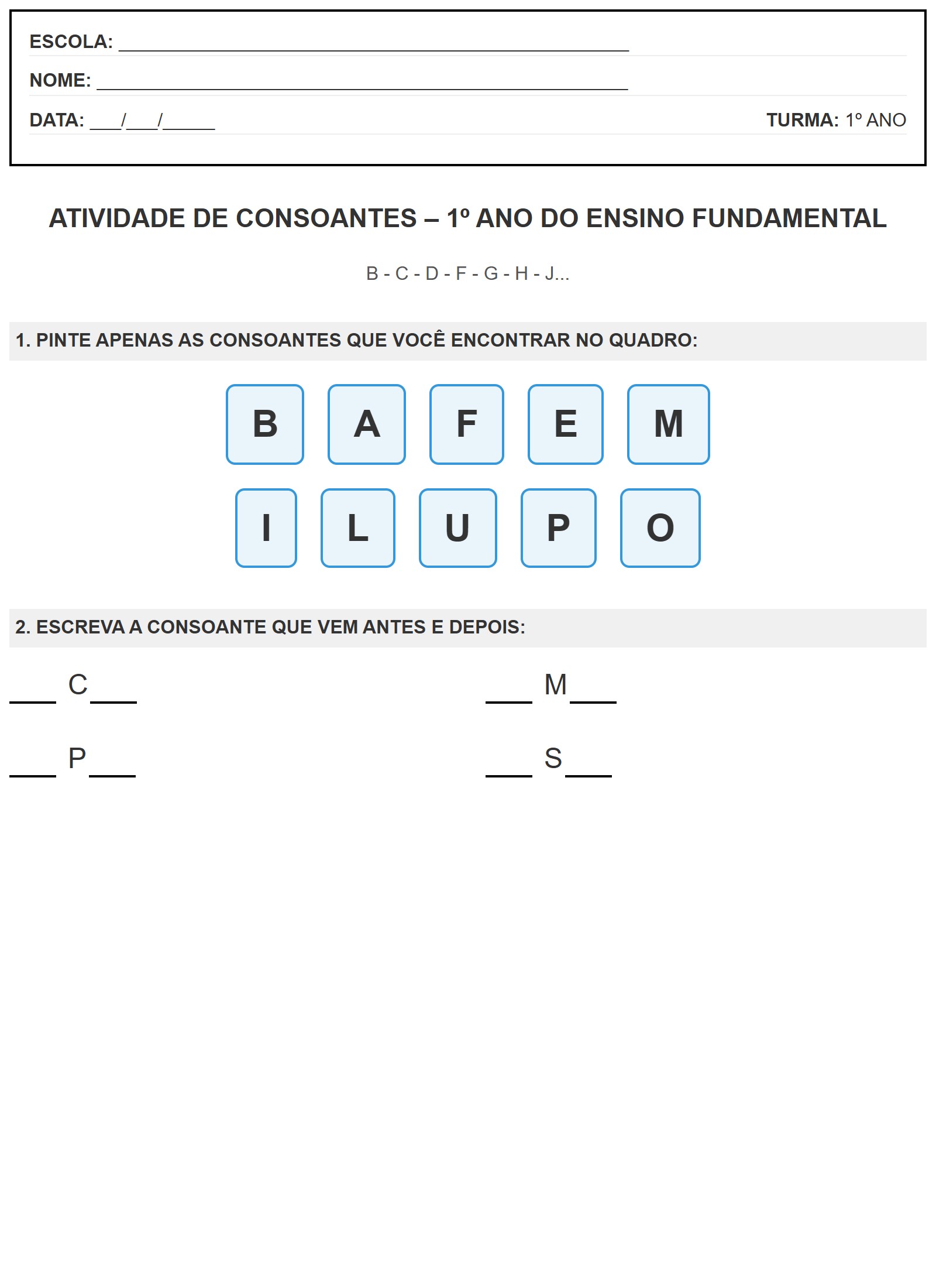 2. ESCREVA A CONSOANTE QUE VEM ANTES E DEPOIS: