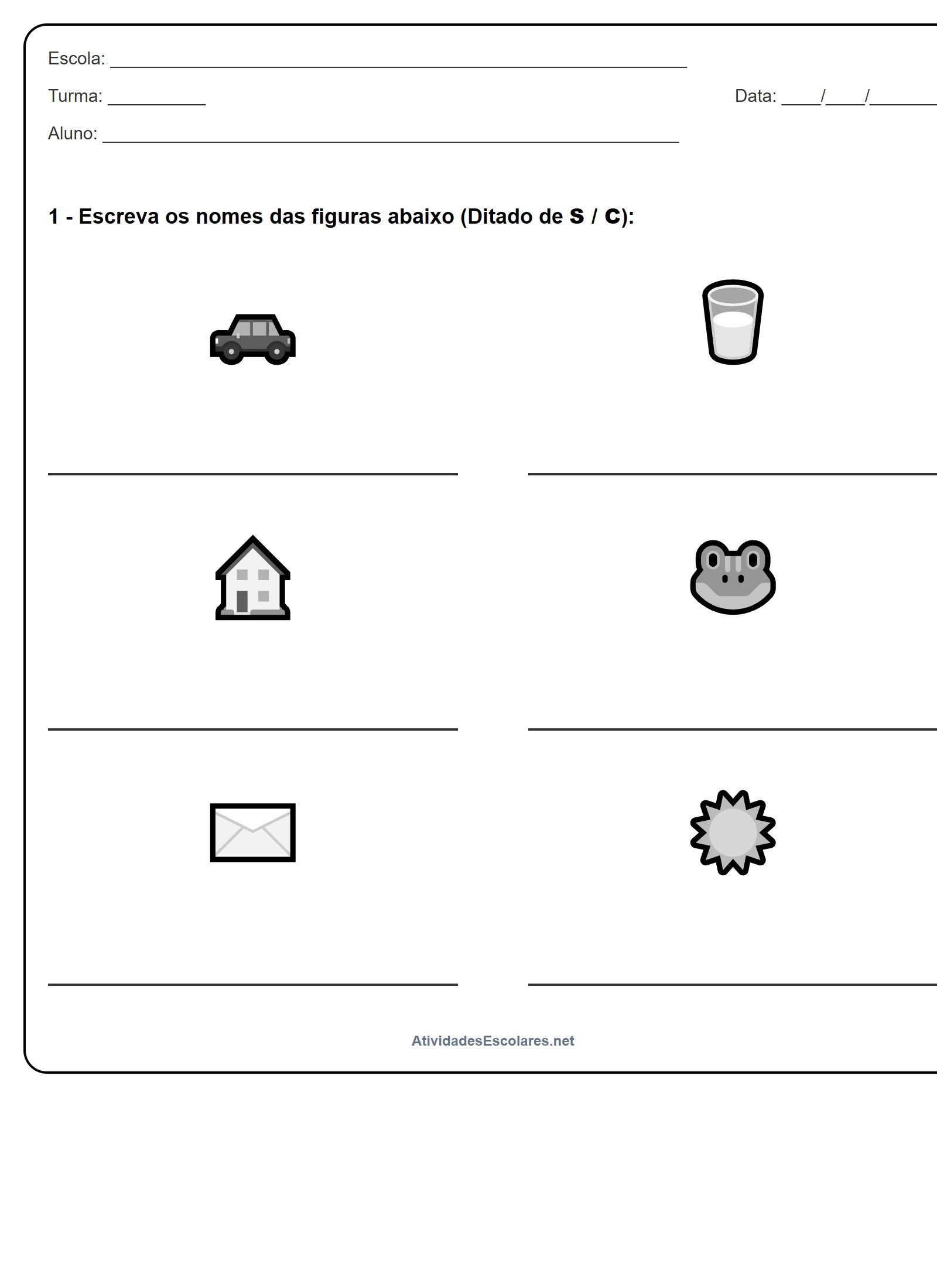 1 - Escreva os nomes das figuras abaixo (Ditado de