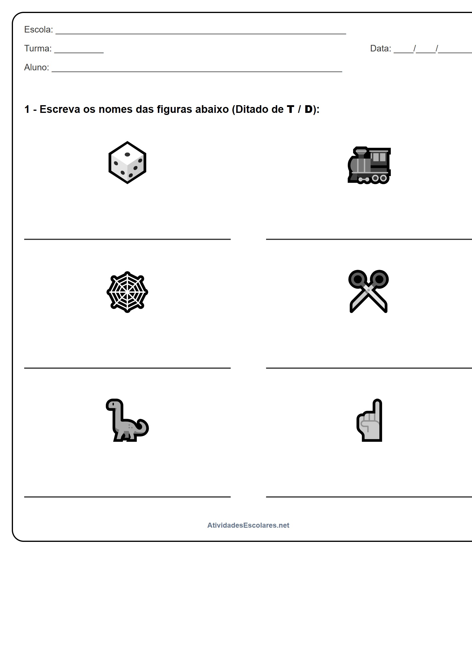 1 - Escreva os nomes das figuras abaixo (Ditado de