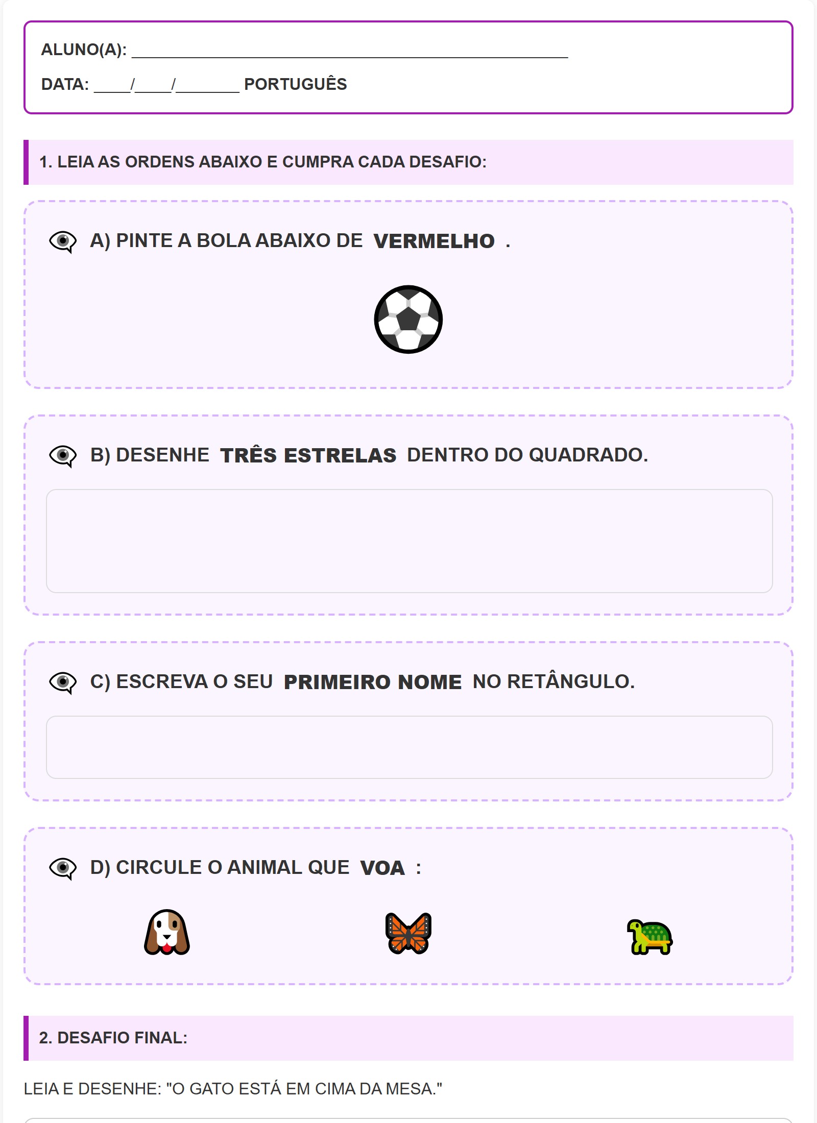 1. LEIA AS ORDENS ABAIXO E CUMPRA CADA DESAFIO: