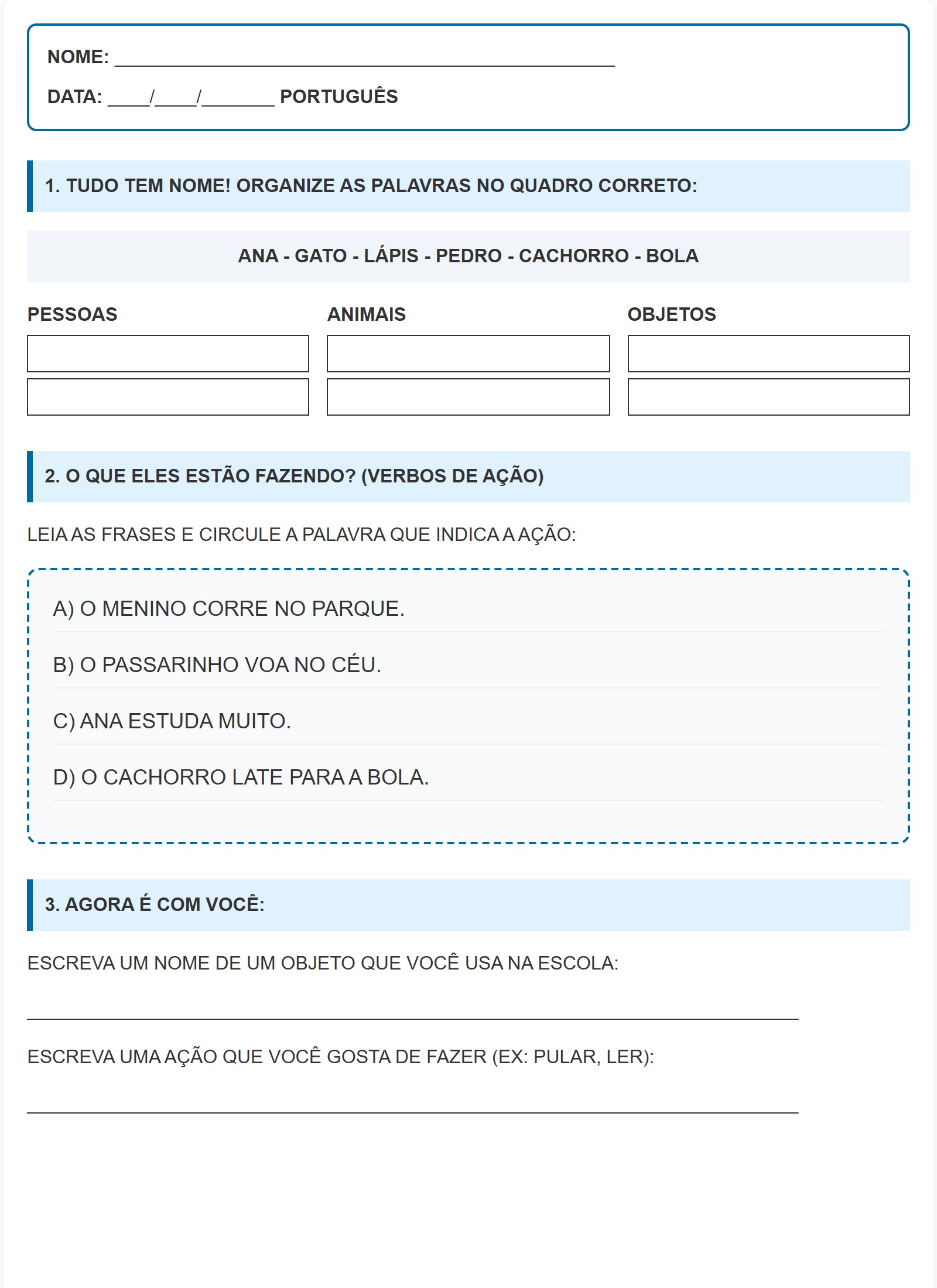 ANA - GATO - LÁPIS - PEDRO - CACHORRO - BOLA