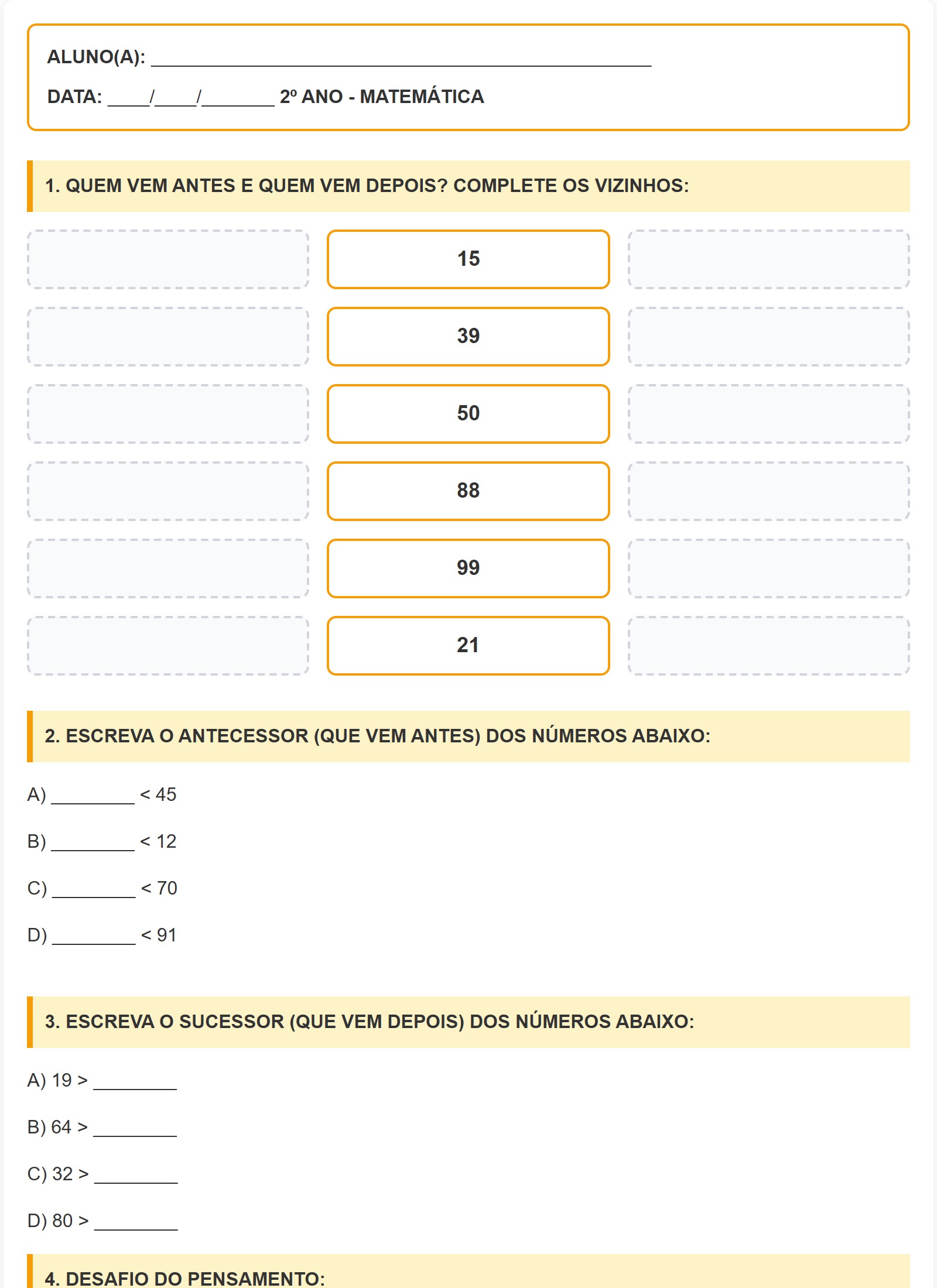 4. DESAFIO DO PENSAMENTO:SOU O ANTECESSOR DE 100. QUEM SOU EU? __________