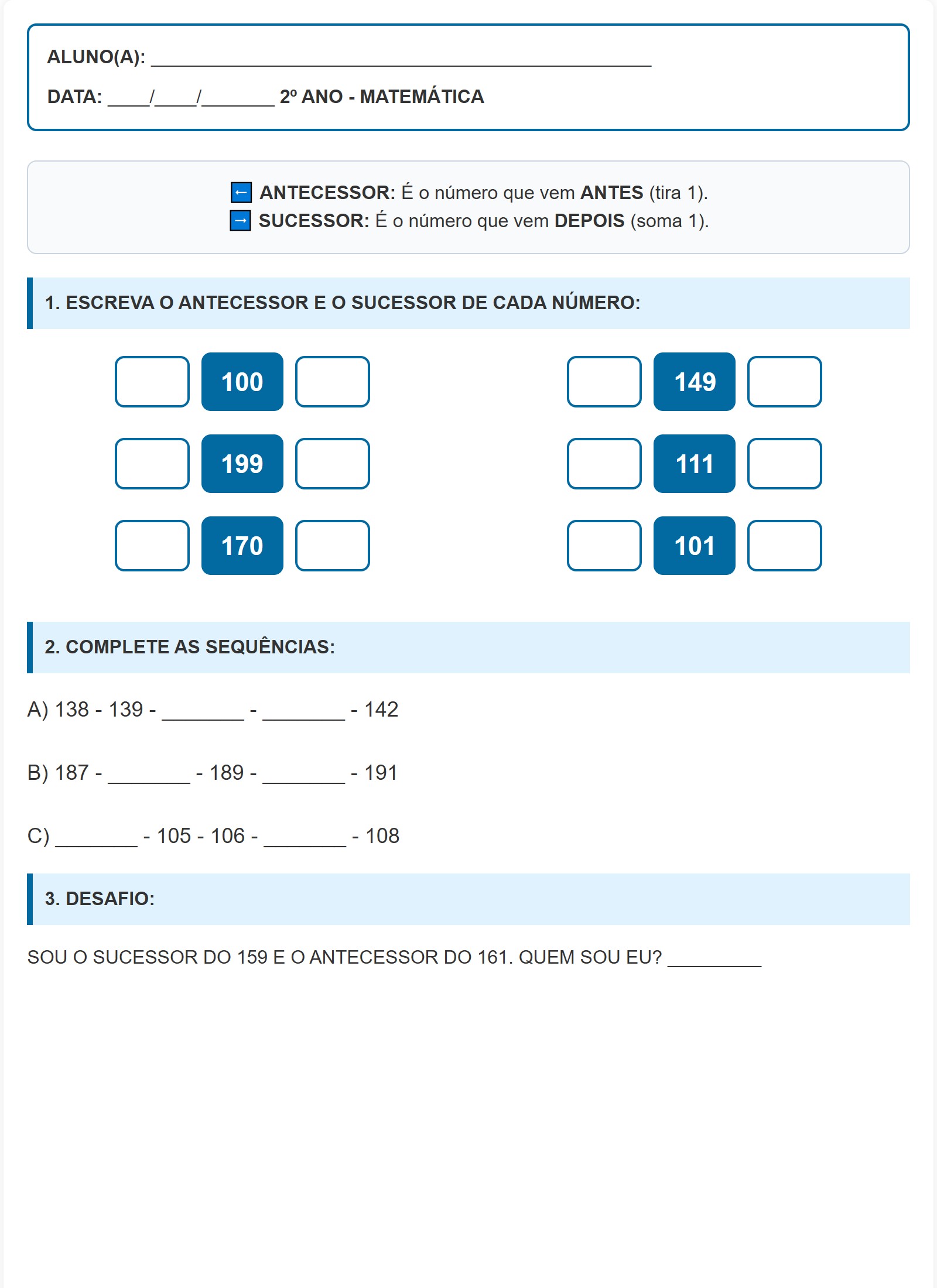 SOU O SUCESSOR DO 159 E O ANTECESSOR DO 161. QUEM SOU EU? _________