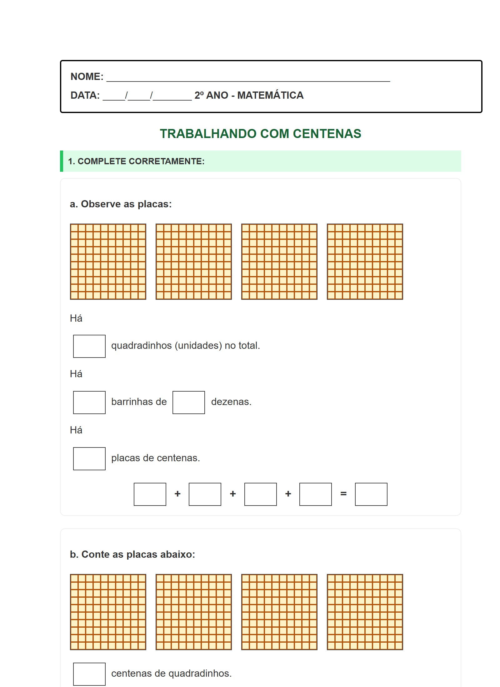Atividade de Matemática 2º Ano: Sistema de Numeração Decimal