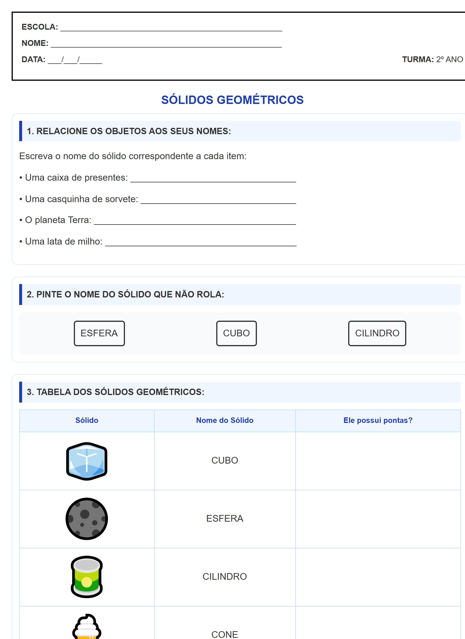 b) Qual sólido tem o formato de um rolo de papel? ____________________