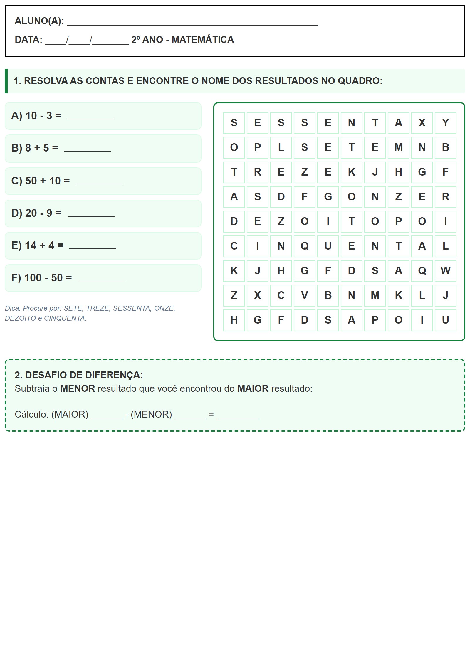 Atividade de Caca Resultados Exercicio 2 2º Ano
