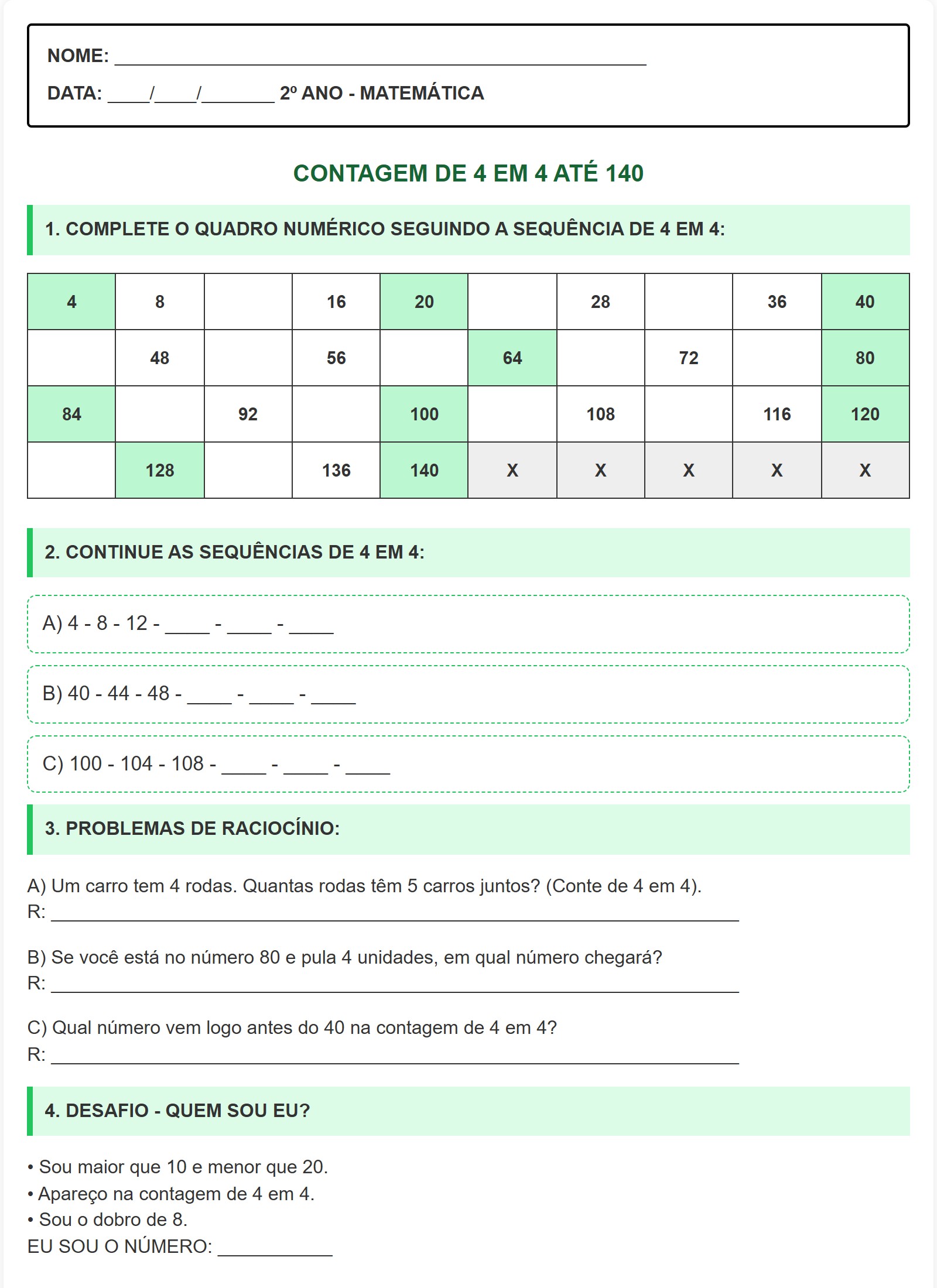 C) Qual número vem logo antes do 40 na contagem de 4 em 4?