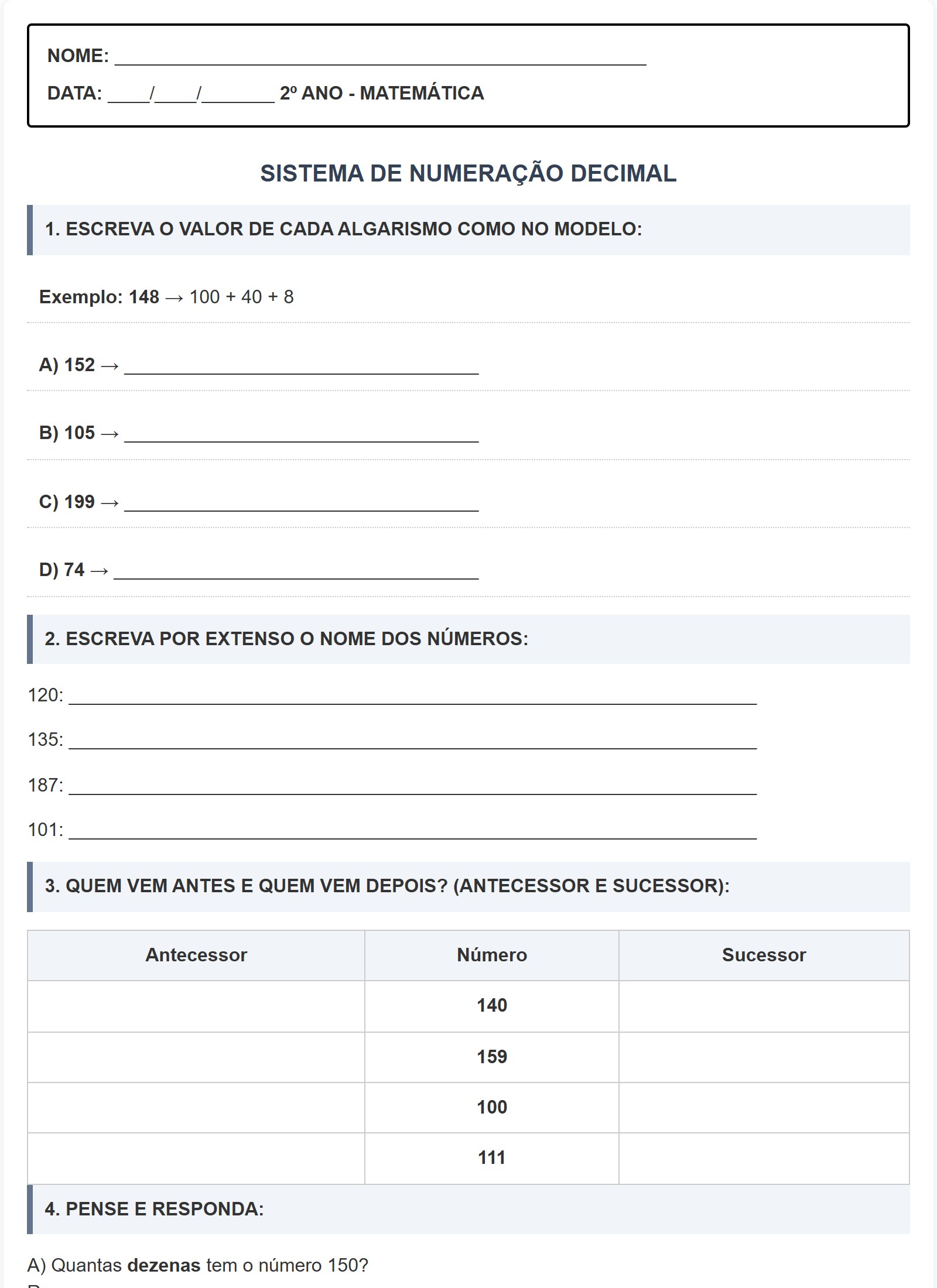 Atividade de Numeros Ordinais: Indicadores de Posicao - M... Atividade de Matemática 2º Ano: Sistema de Numeração Decimal Atividade de Antecessor E Sucessor 2º Ano 2 2º Ano