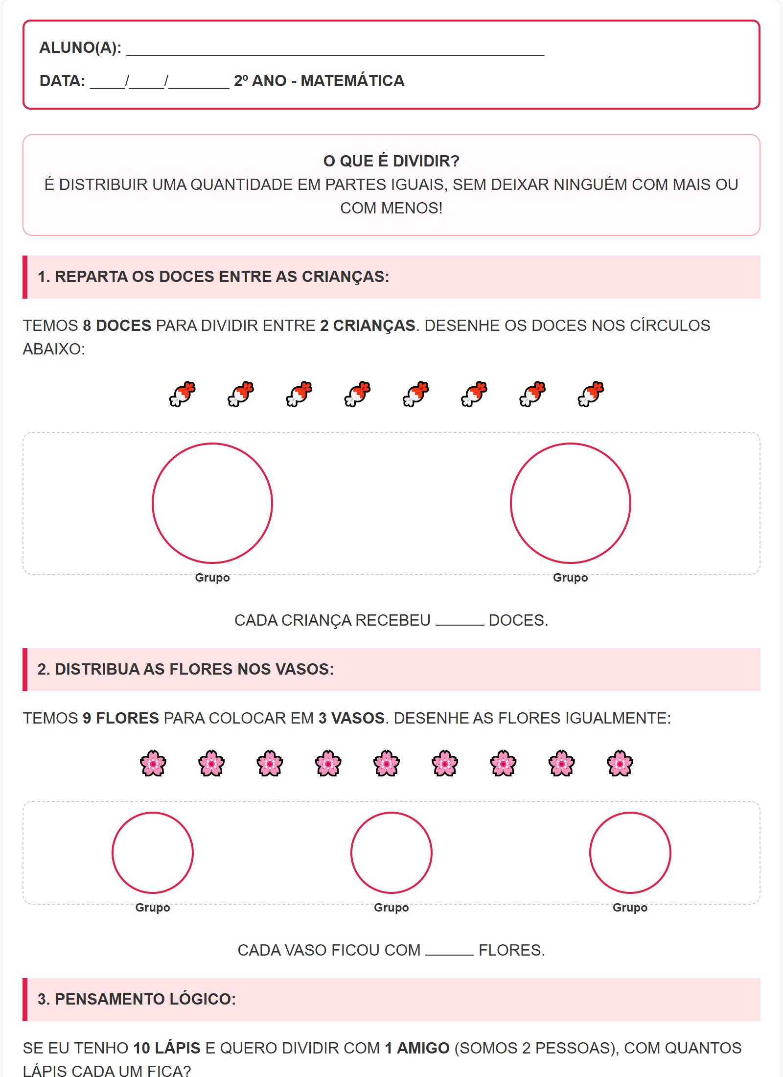 3. PENSAMENTO LÓGICO:SE EU TENHO 10 LÁPIS E QUERO DIVIDIR COM 1 AMIGO (SOMOS 2 PESSOAS), COM QUANTOS LÁPIS CADA UM FICA?