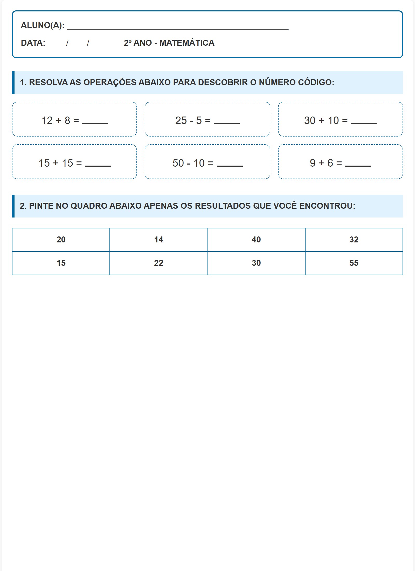 1. RESOLVA AS OPERAÇÕES ABAIXO PARA DESCOBRIR O NÚMERO CÓDIGO: