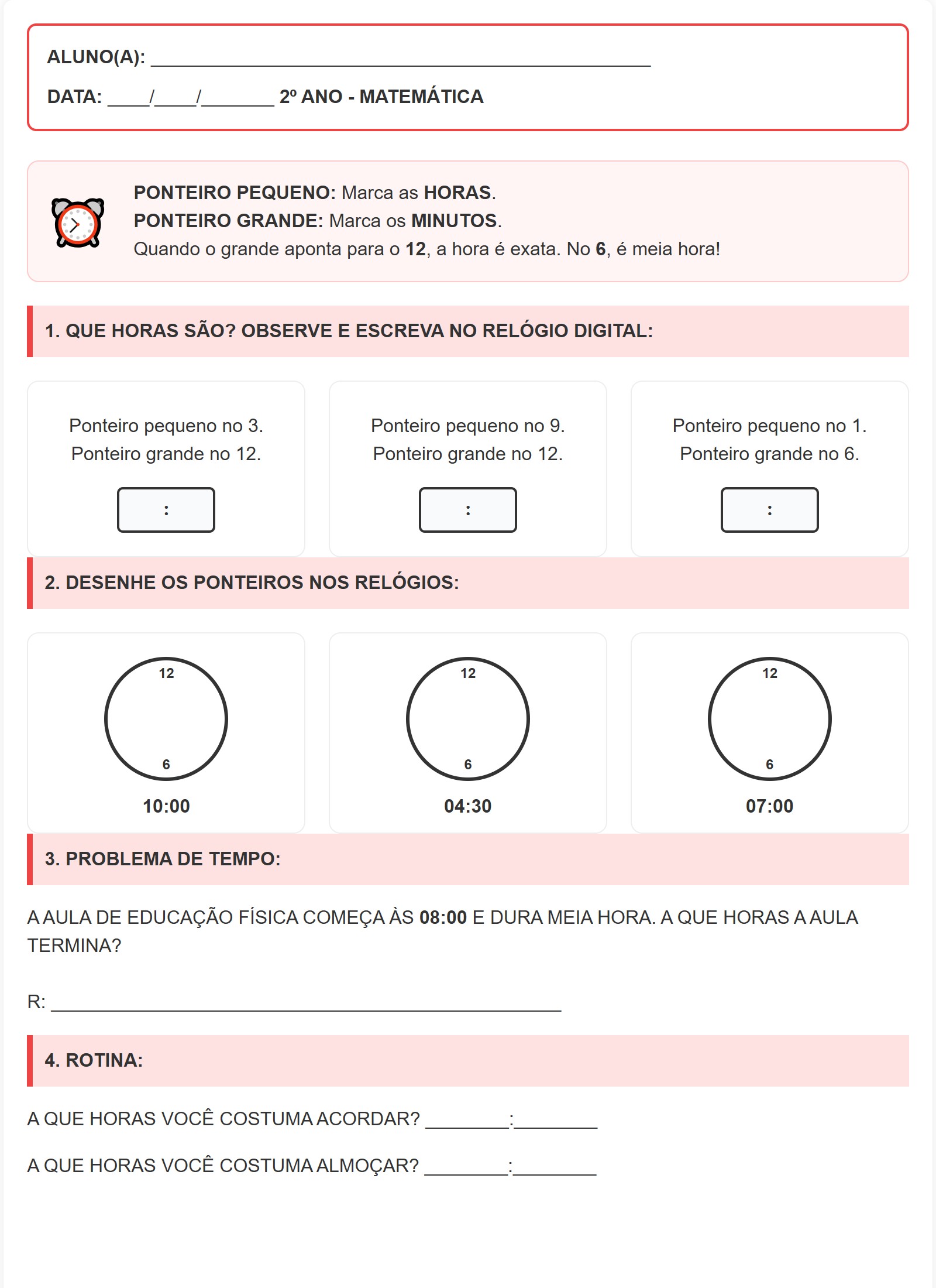 A QUE HORAS VOCÊ COSTUMA ACORDAR? ________:________