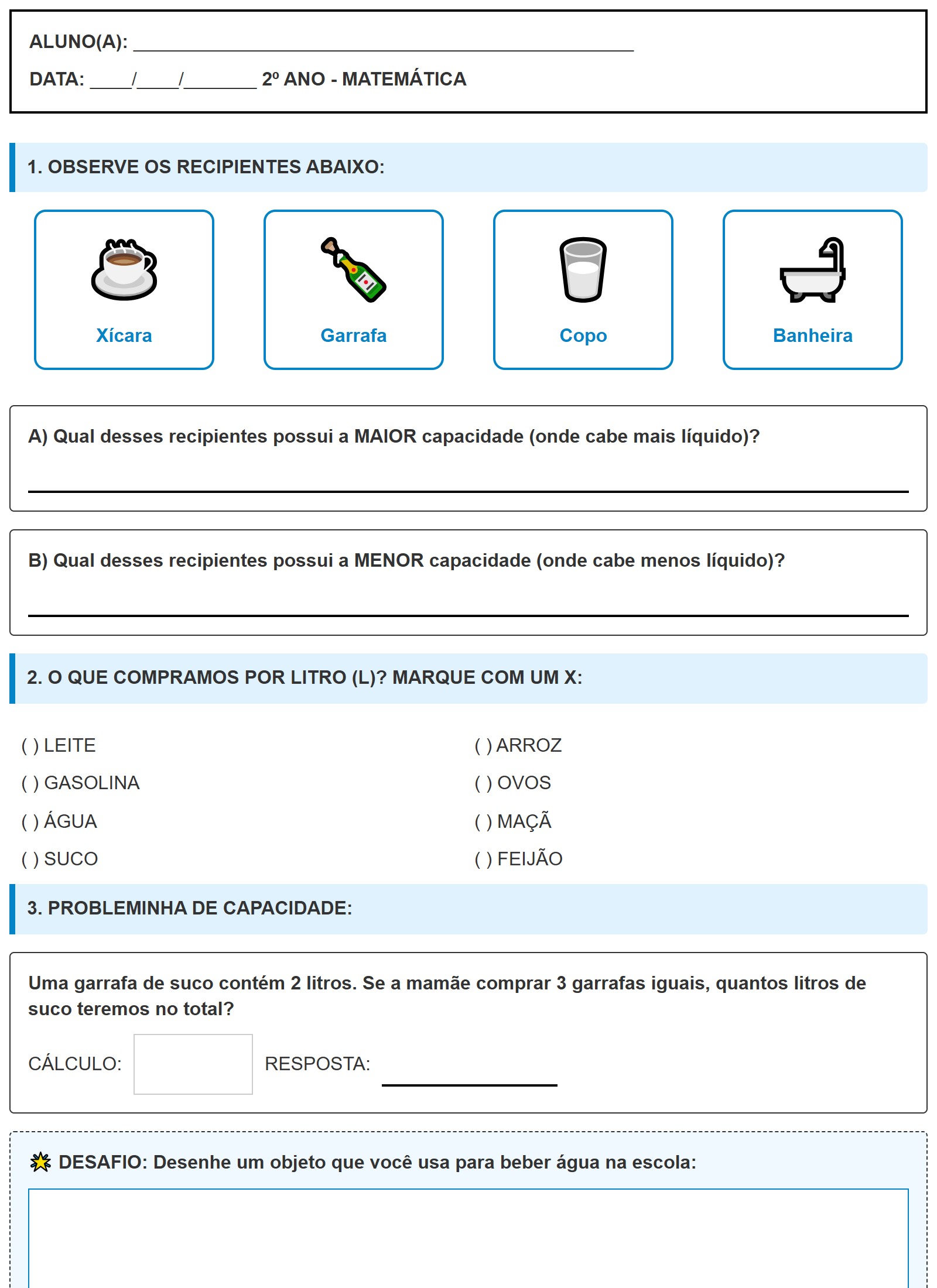 A) Qual desses recipientes possui a MAIOR capacidade (onde cabe mais líquido)?