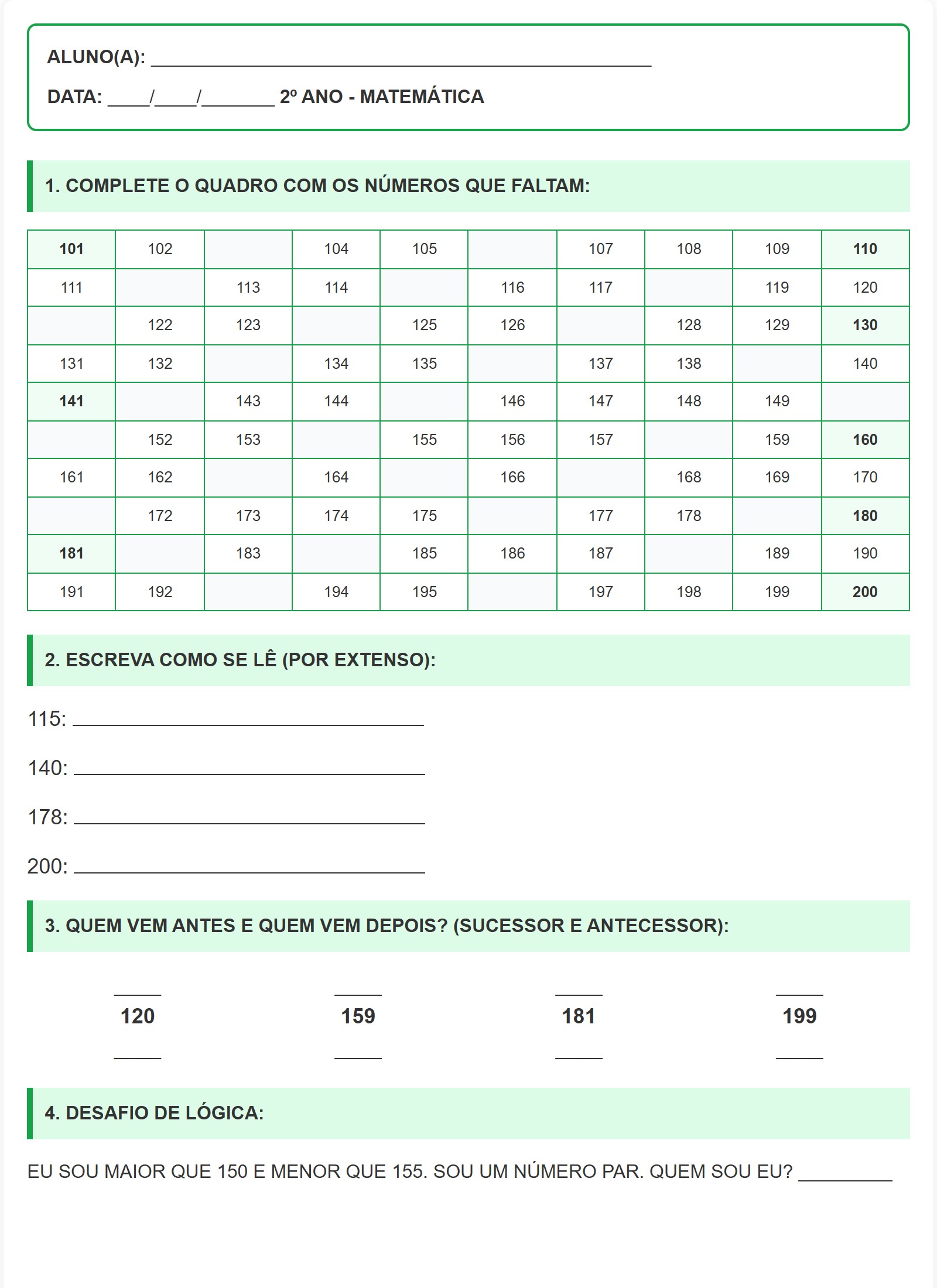EU SOU MAIOR QUE 150 E MENOR QUE 155. SOU UM NÚMERO PAR. QUEM SOU EU? _________