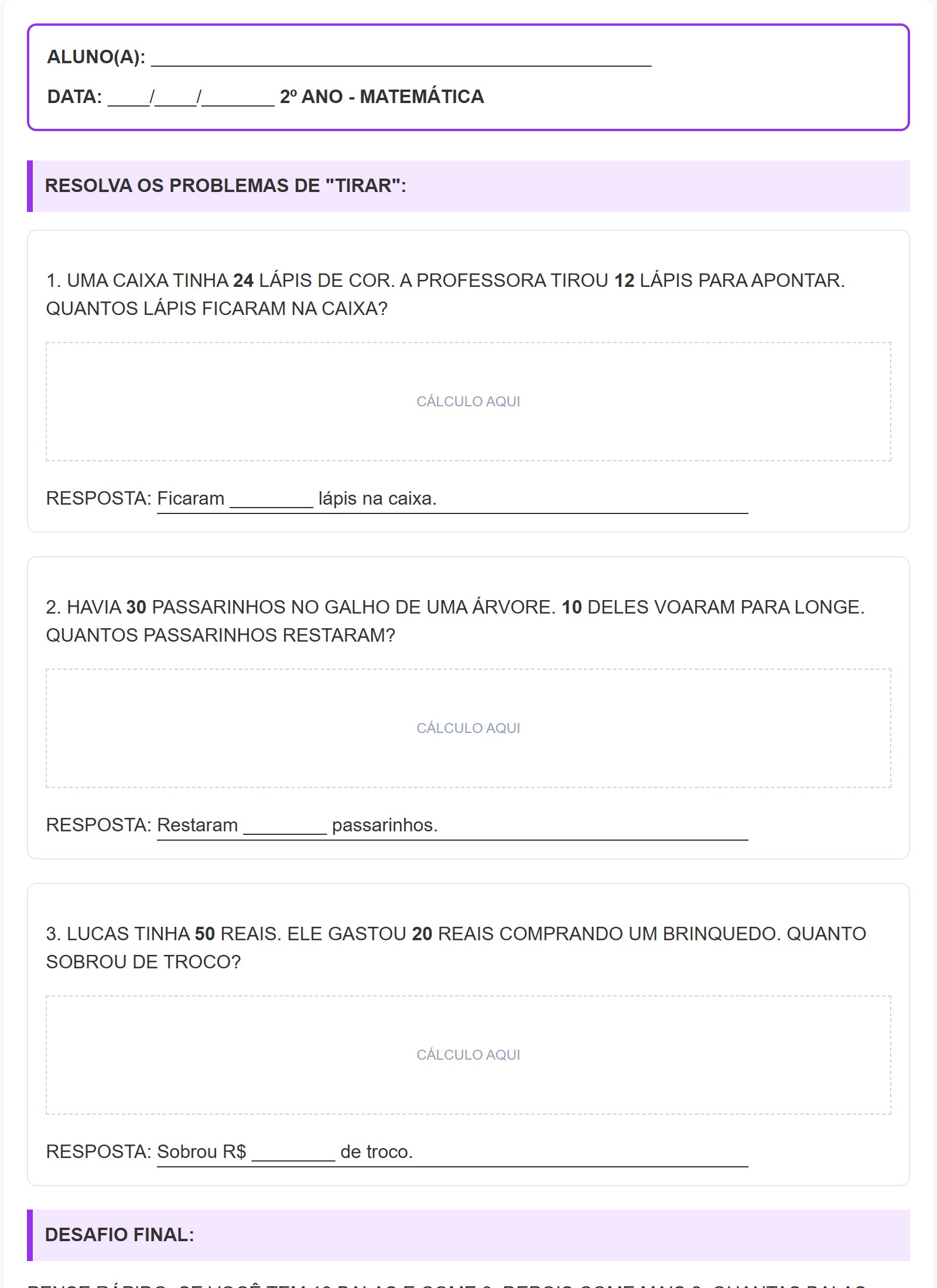 Atividade de Atividades De Subtração 2º Ano Atividade de Figuras Planas 2º Ano Atividade de Operacoes Problemas 2º Ano