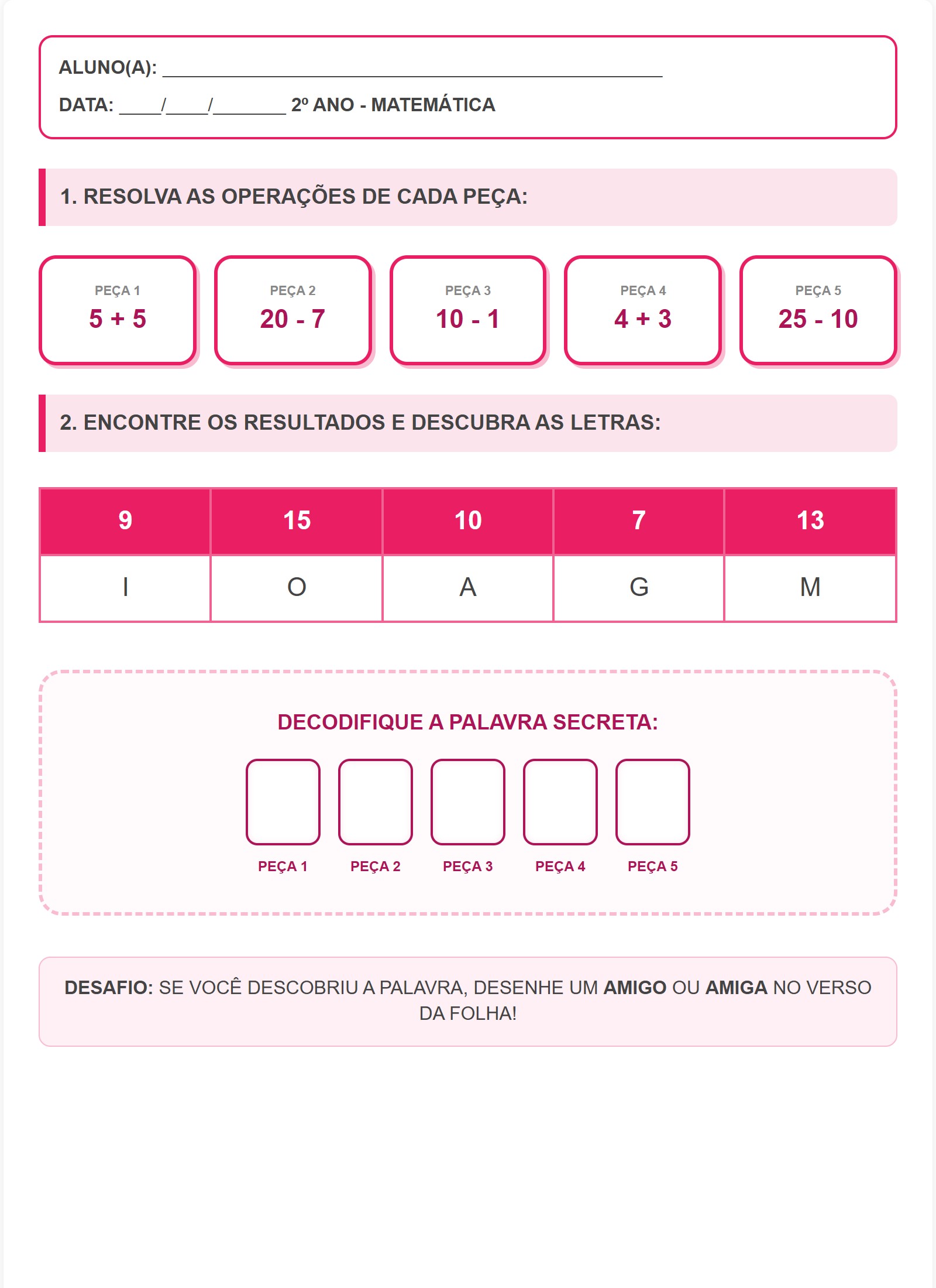 2. ENCONTRE OS RESULTADOS E DESCUBRA AS LETRAS: