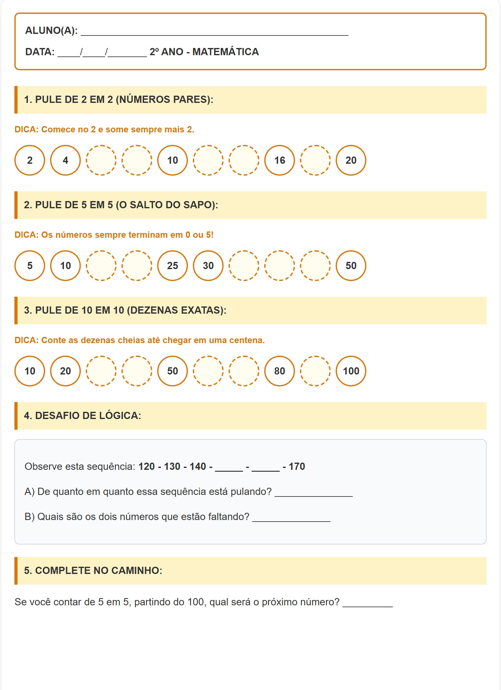 Se você contar de 5 em 5, partindo do 100, qual será o próximo número? _________