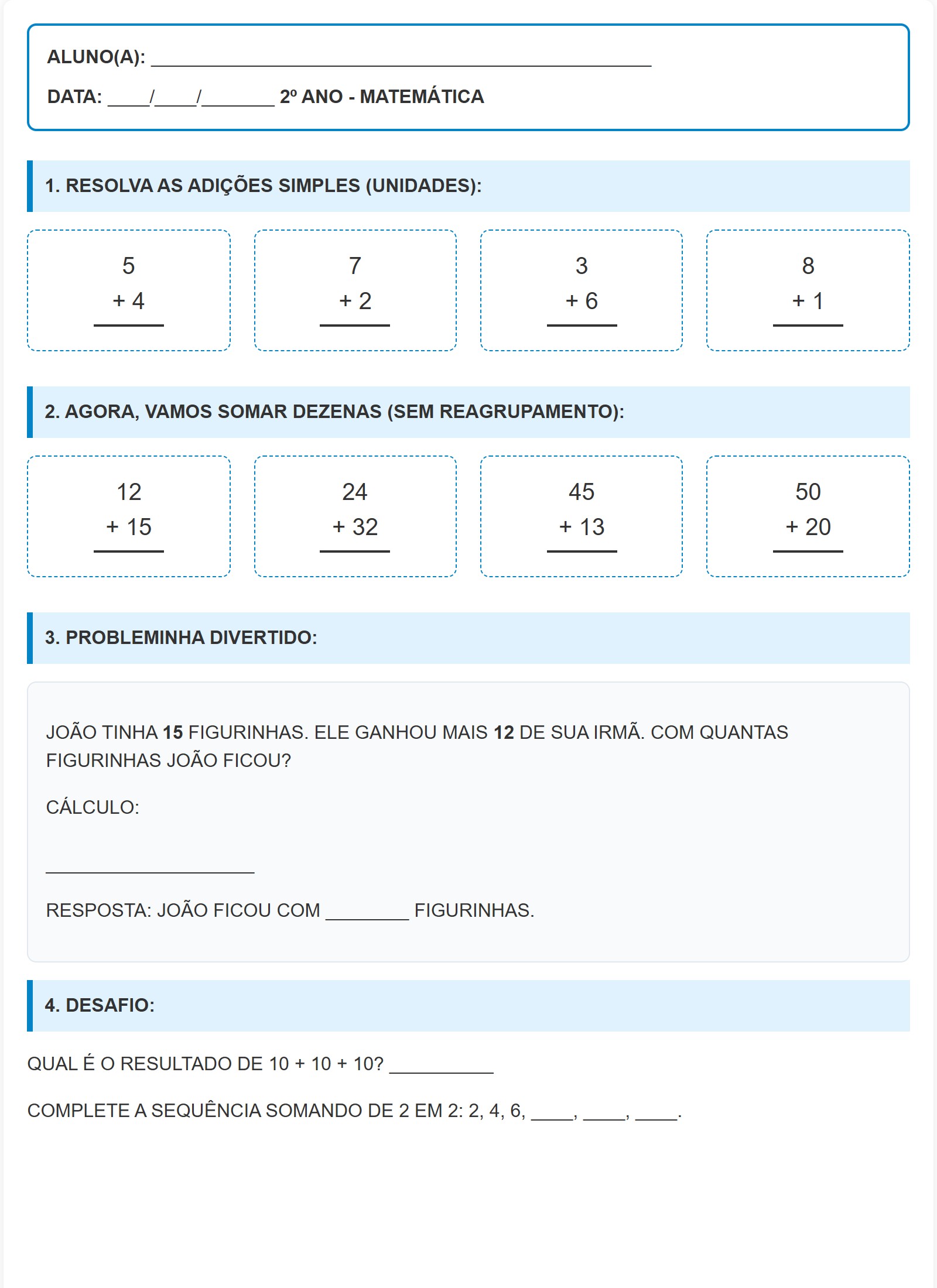 QUAL É O RESULTADO DE 10 + 10 + 10? __________
