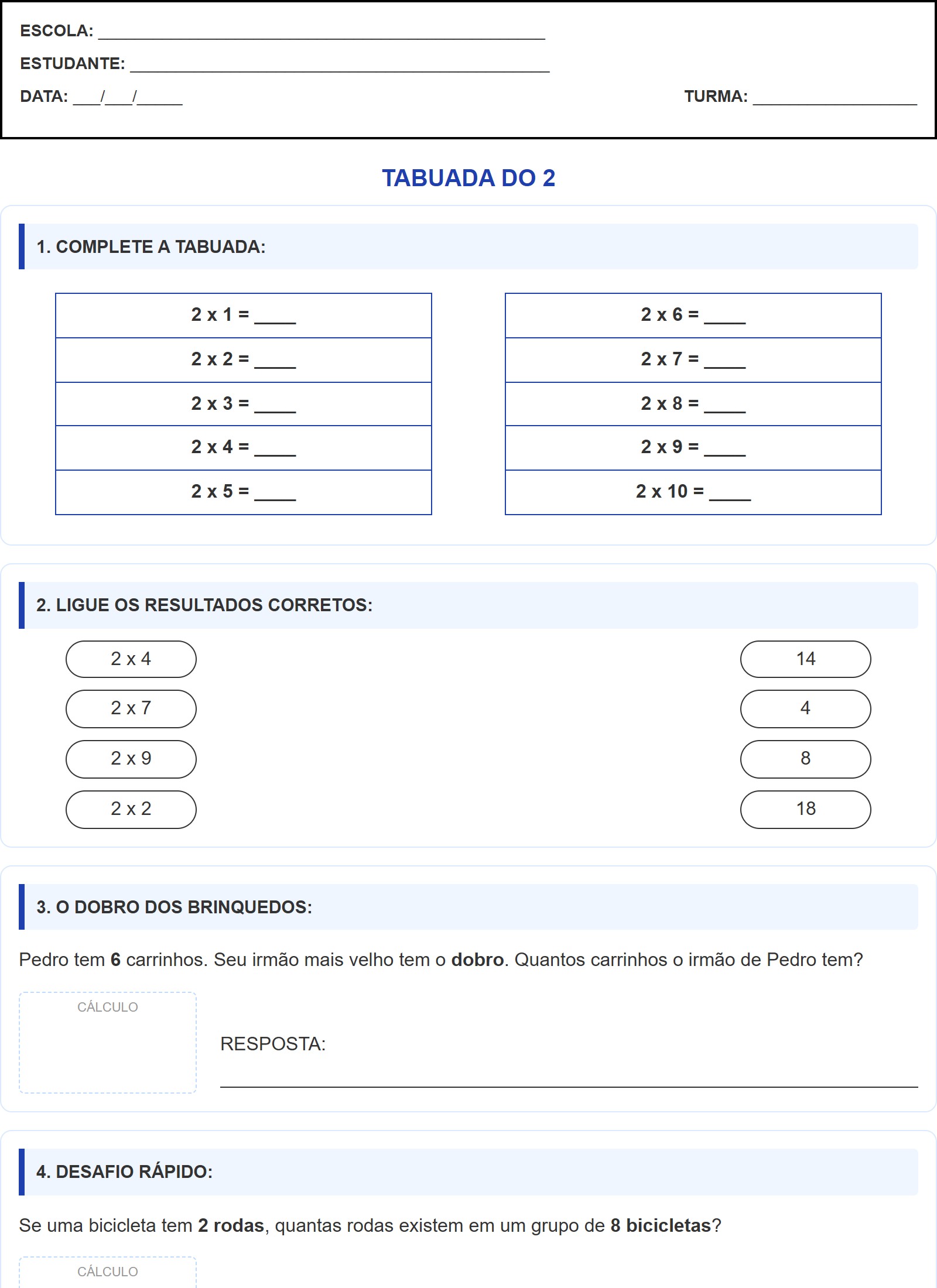 | 2 x 2 = ____ |