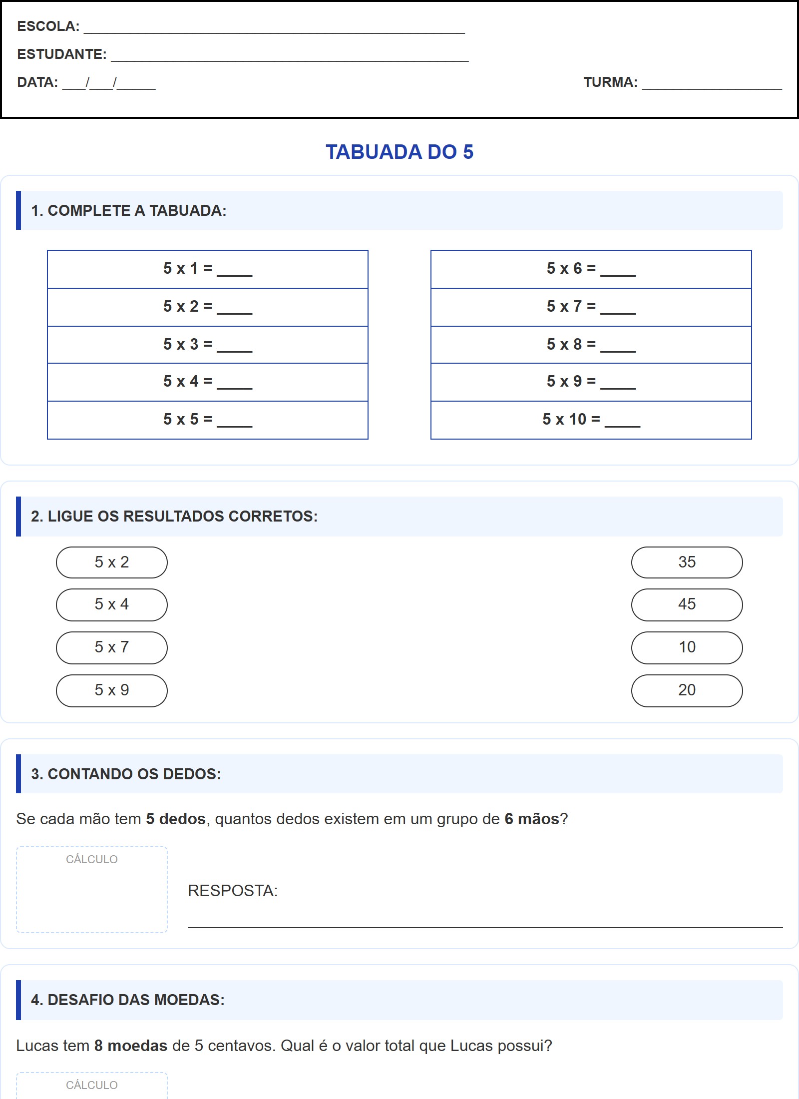 Se cada mão tem 5 dedos, quantos dedos existem em um grupo de 6 mãos?