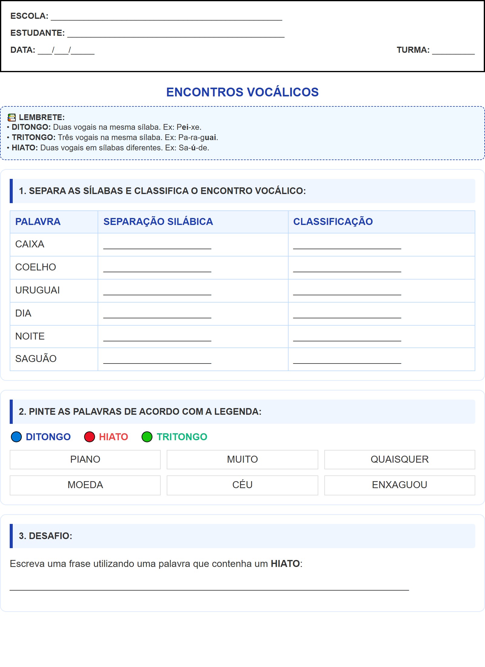 🔵 DITONGO 🔴 HIATO 🟢 TRITONGO