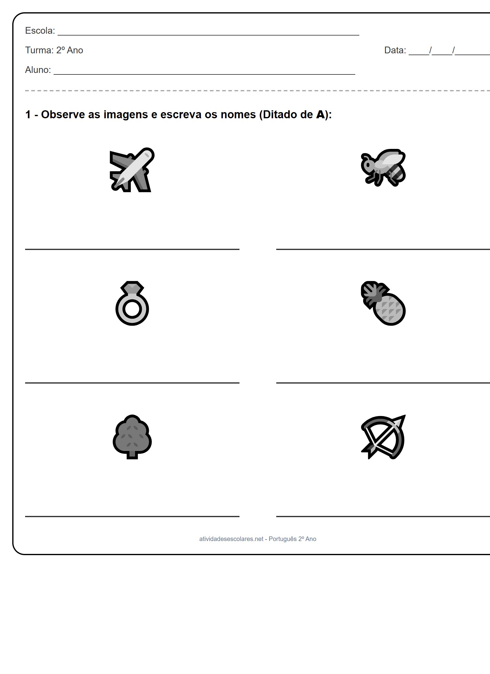1 - Observe as imagens e escreva os nomes (Ditado de